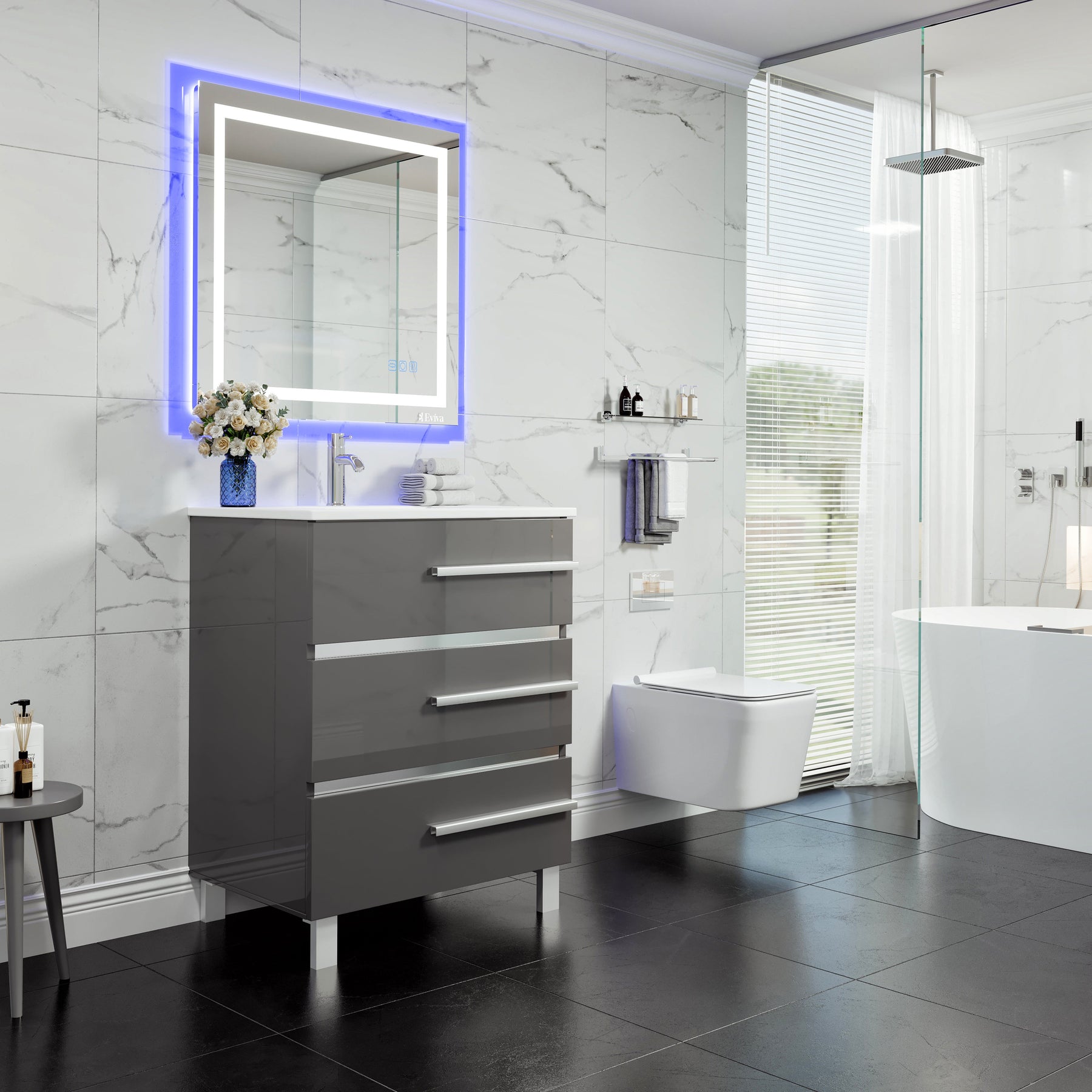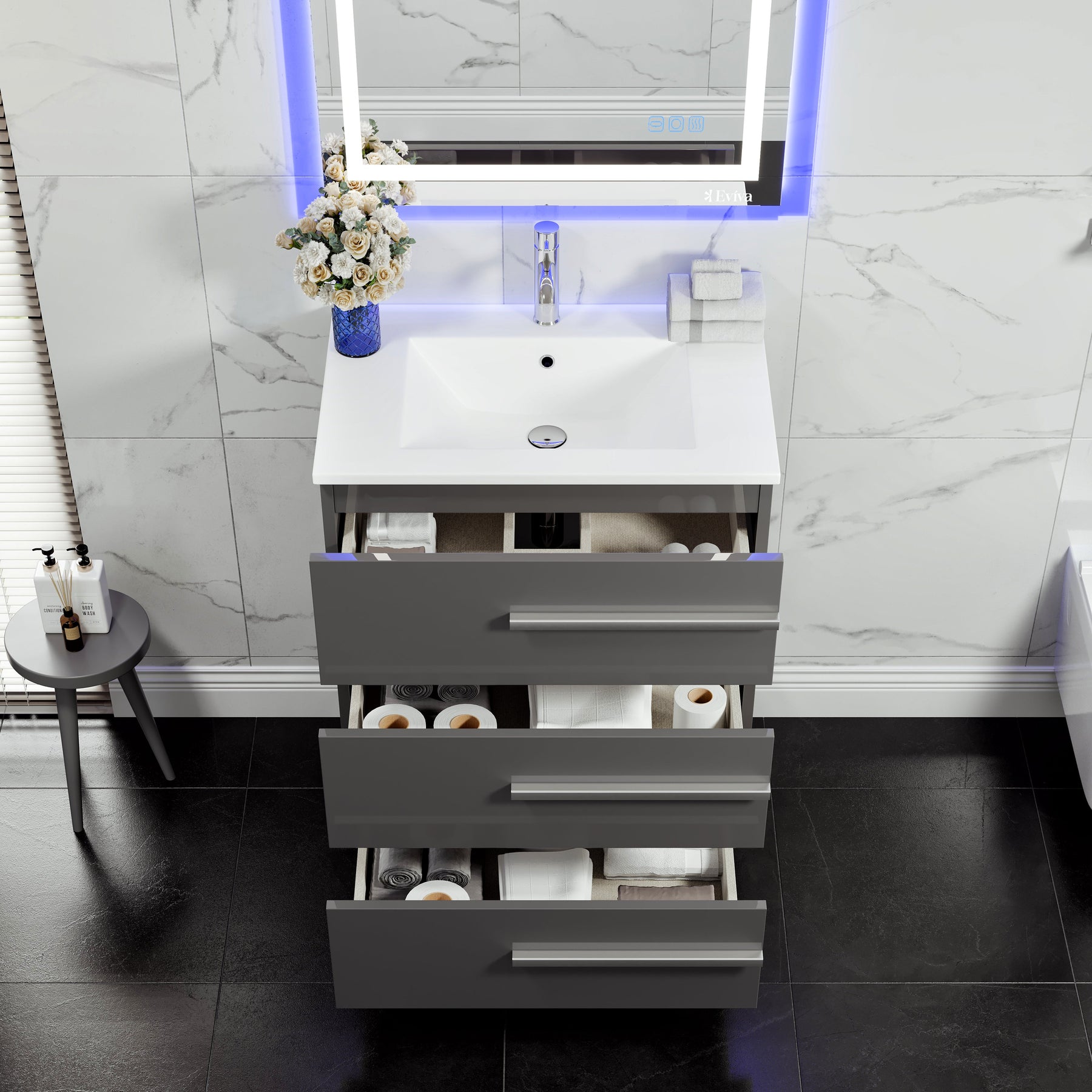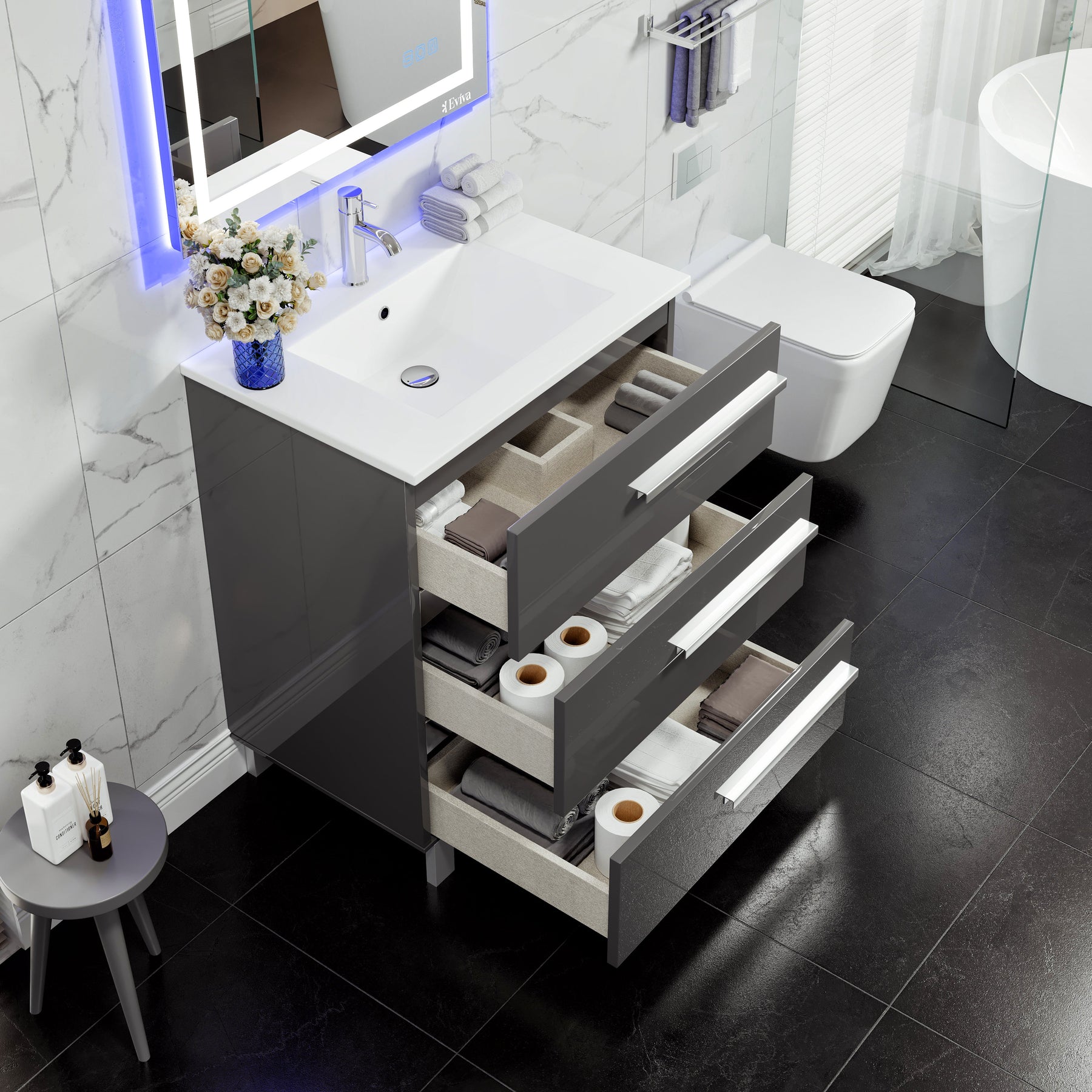 Eviva Deluxe 32" Gray Freestanding Vanity with Porcelain Top