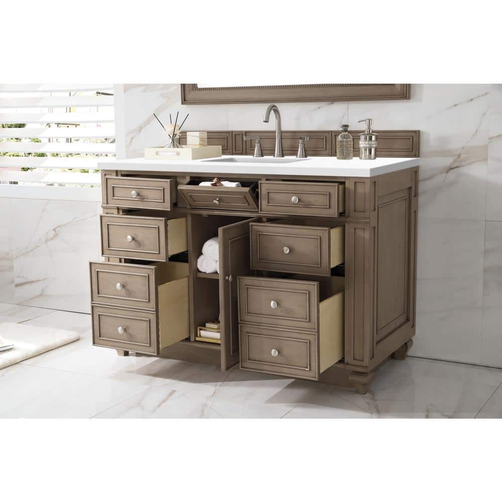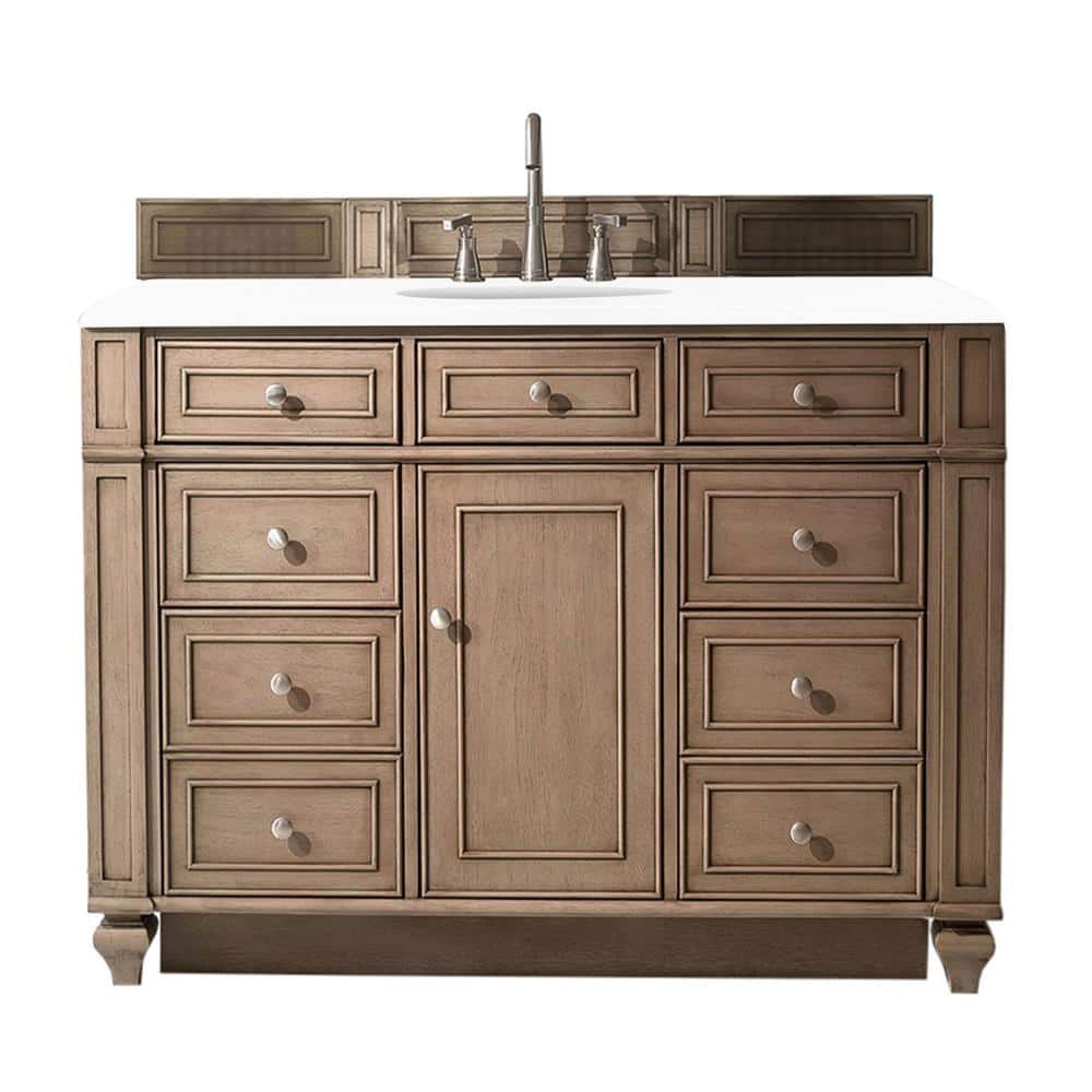 James Martin Vanities Bristol 48-inch Bathroom Vanity in Whitewashed Walnut with Quartz Top