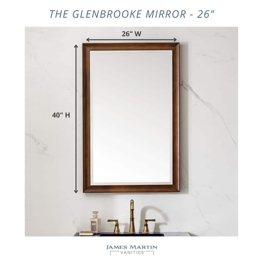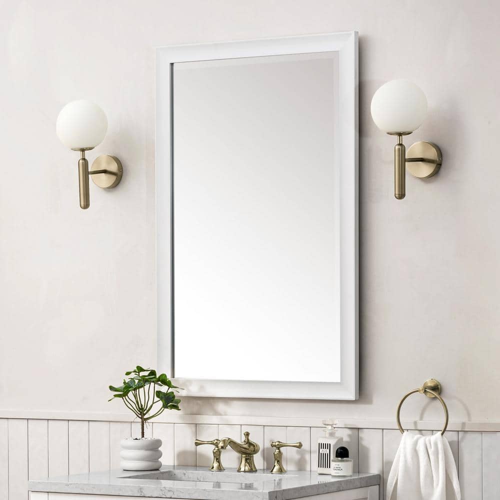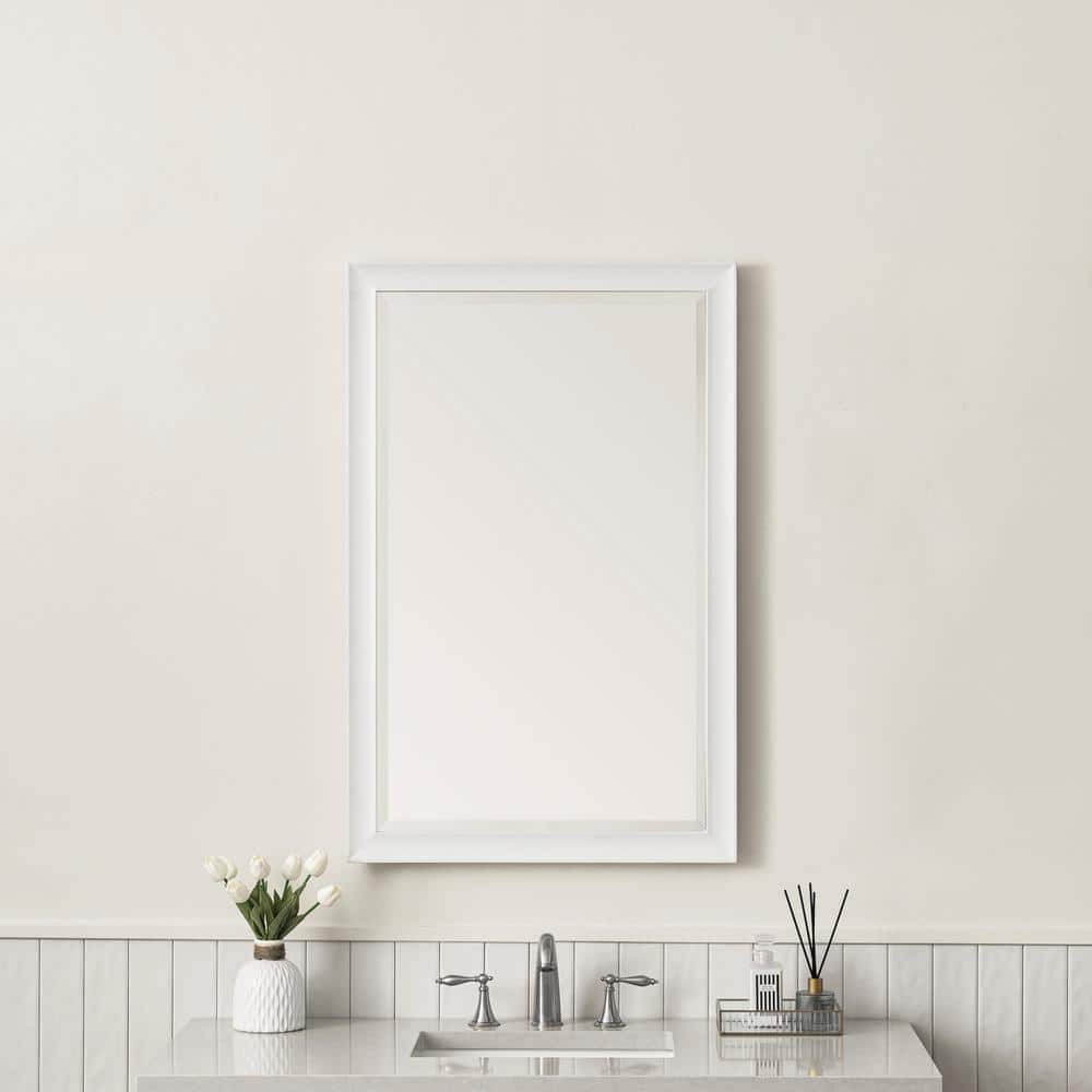 The Glenbrooke mirror by James Martin Vanities combines classic elegance with modern design. Featuring a bright white wooden frame, a 1-inch beveled glass, and versatile mounting options, this mirror is perfect for any bathroom or living space.