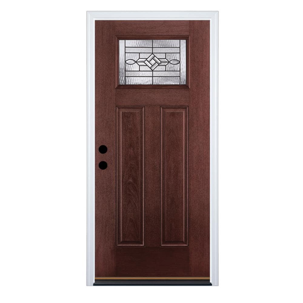 WickerPark Mahogany-Stained Fiberglass Craftsman Prehung Front Door, RH Inswing