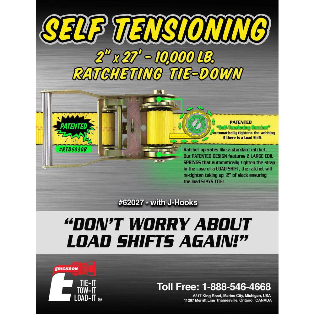 2 in. x 27 ft. 10,000 lbs. Self Tensioning Ratchet Strap with Double "J" Hooks