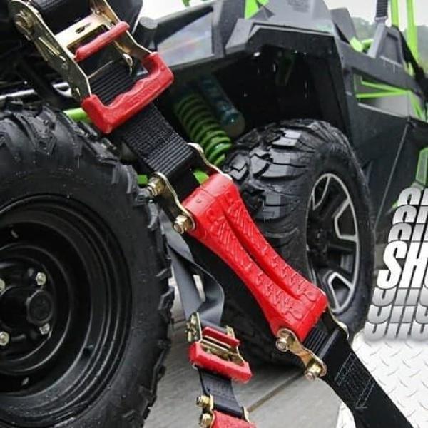 SHOCKSTRAPs keep constant tension on your tie downs so you never have to worry about your straps coming loose or falling off. When you secure your cargo with SHOCKSTRAP, you do not need to tighten the ratchet to the very last click, your cargo is secure once our SHOCKSTRAP urethane is engaged. There are soft ties next to both hooks giving you more options on where to attach the oversized double hooks. An integrated safety strap gives you added protection if something catastrophic happens you always have a back up strap in place. The ratchet and urethane SHOCKSTRAP are bolted on with grade 8 bolts and are field replaceable. Our webbing is Polyester for superior breaking strength.