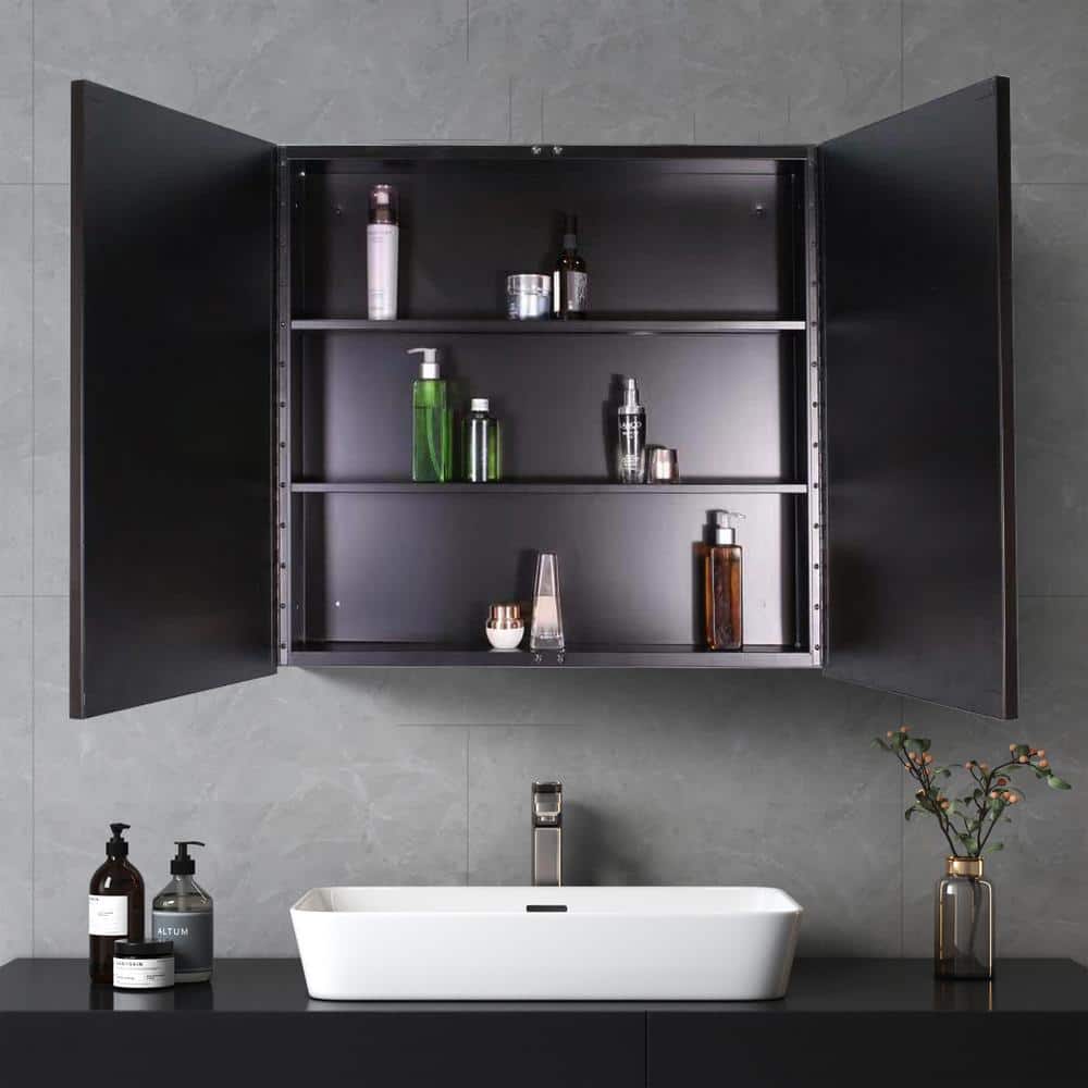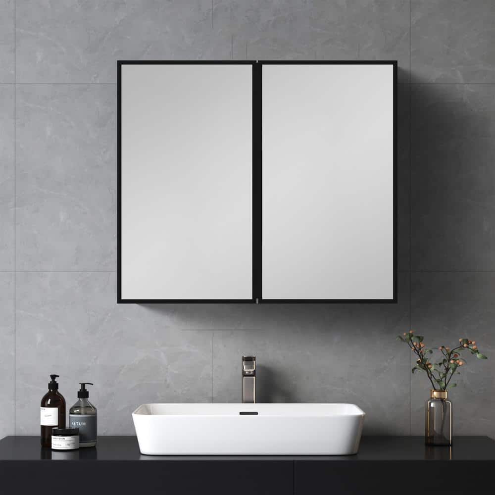 Tileon 30x26 Black Medicine Cabinet with Mirror