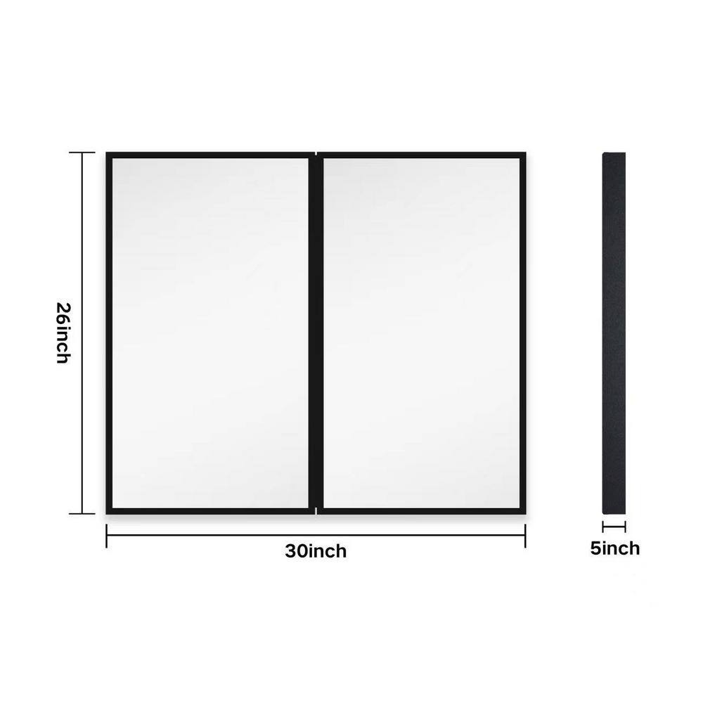 Tileon 30 in. W x 26 in. H Rectangular Black Metal Wall Mount or Recessed Medicine Cabinet with Mirror