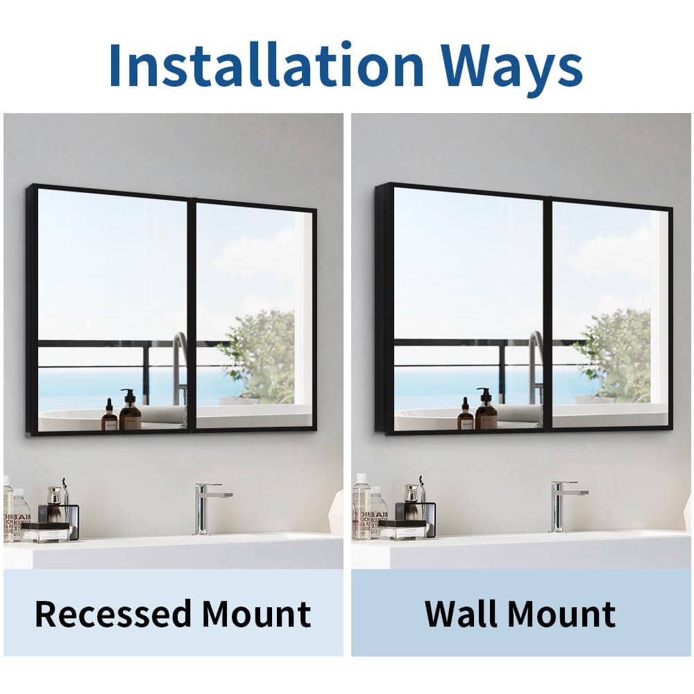Elevate your bathroom's aesthetic and organization with the Tileon 30x26 Black Medicine Cabinet. This versatile piece can be wall-mounted or recessed, blending seamlessly into any interior space. With its sleek black aluminum frame and generous storage, this cabinet combines style and functionality for professional and DIY renovators alike.