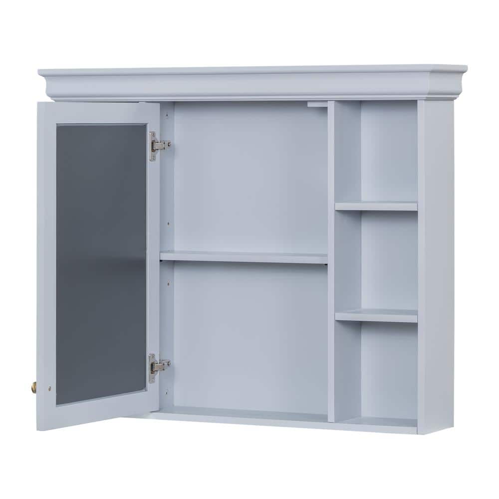 Tileon 35.50 in. W x 28.74 in. H Rectangular MDF Medicine Cabinet with Mirror, Storage Cabinet with 6 Open Shelves-Blue