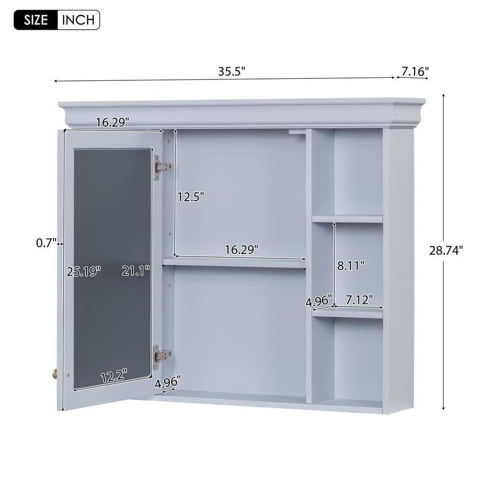 Elevate your bathroom with the Tileon 35.5 in. W x 28.74 in. H Rectangular Medicine Cabinet. This stylish cabinet boasts six open shelves and a mirrored door, offering both practical storage and a sophisticated touch to your space. Ideal for maximizing your bathroom's organization and aesthetics.