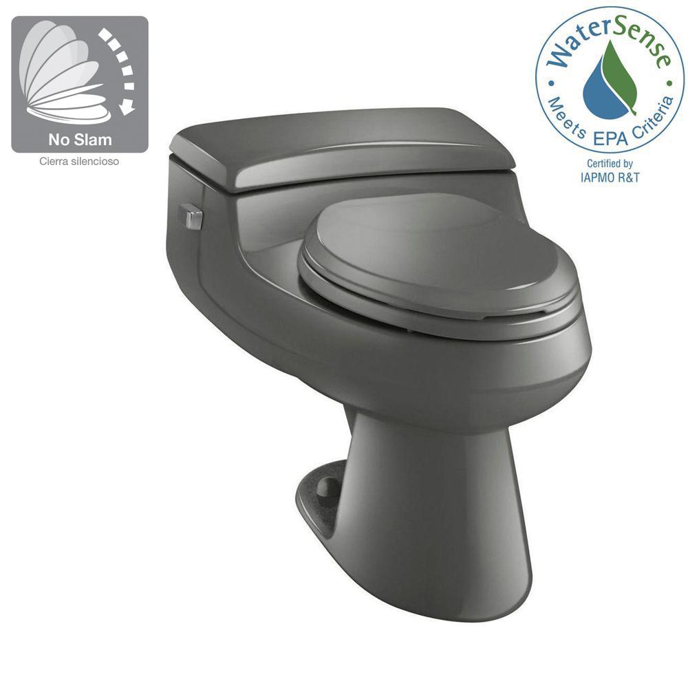 Powered by a Sloan FLUSHMATE pressure vessel, the Thunder Grey San Raphael 1-piece high-efficiency toilet from KOHLER supplies premium flushing power using significantly less water than standard commodes. Each 1.0 Gal. flush represents a 37.5% reduction in water use compared with ultra-low-flush 1.6 GPF toilets that have been commonly installed in bathrooms since the mid-1990s. Combining form with function, the low profile of the San Raphael conveys an elegant contemporary look that will infuse any bathroom with a modern vibe.
