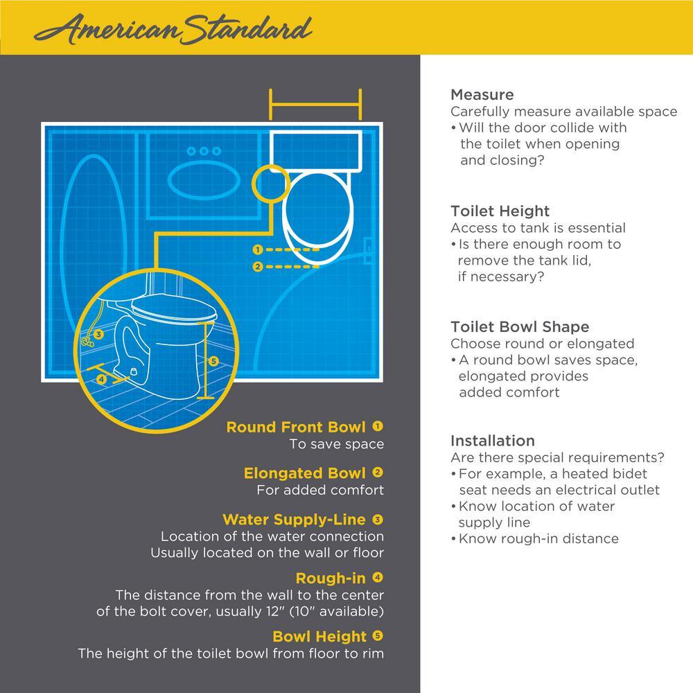 • Round front bowl for fit in smaller bathrooms
