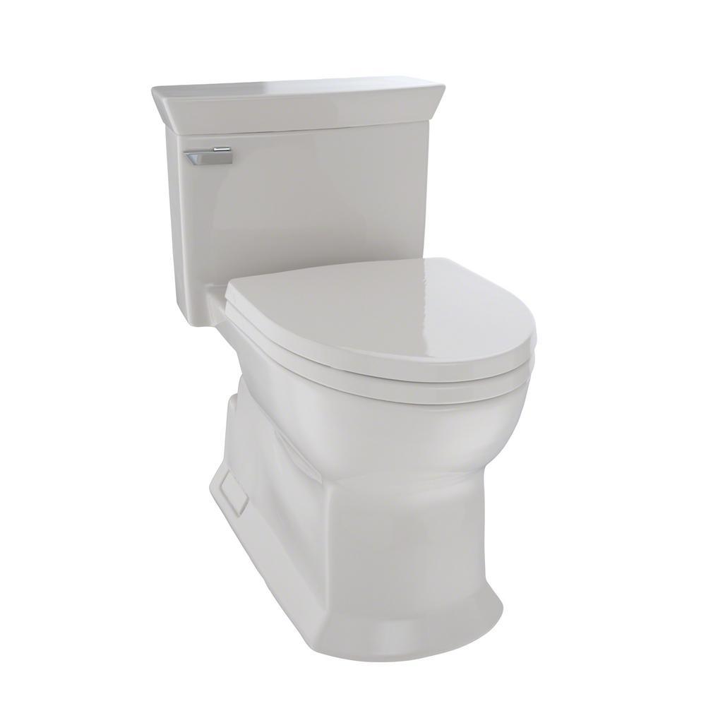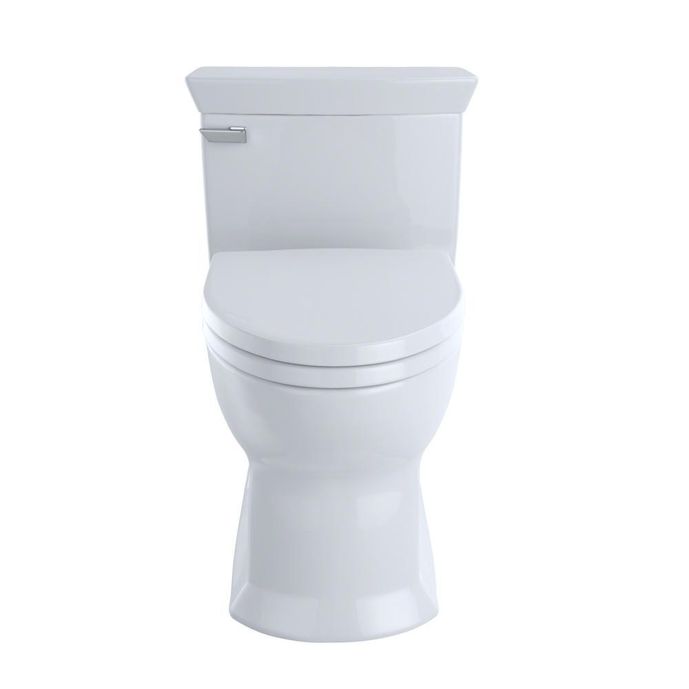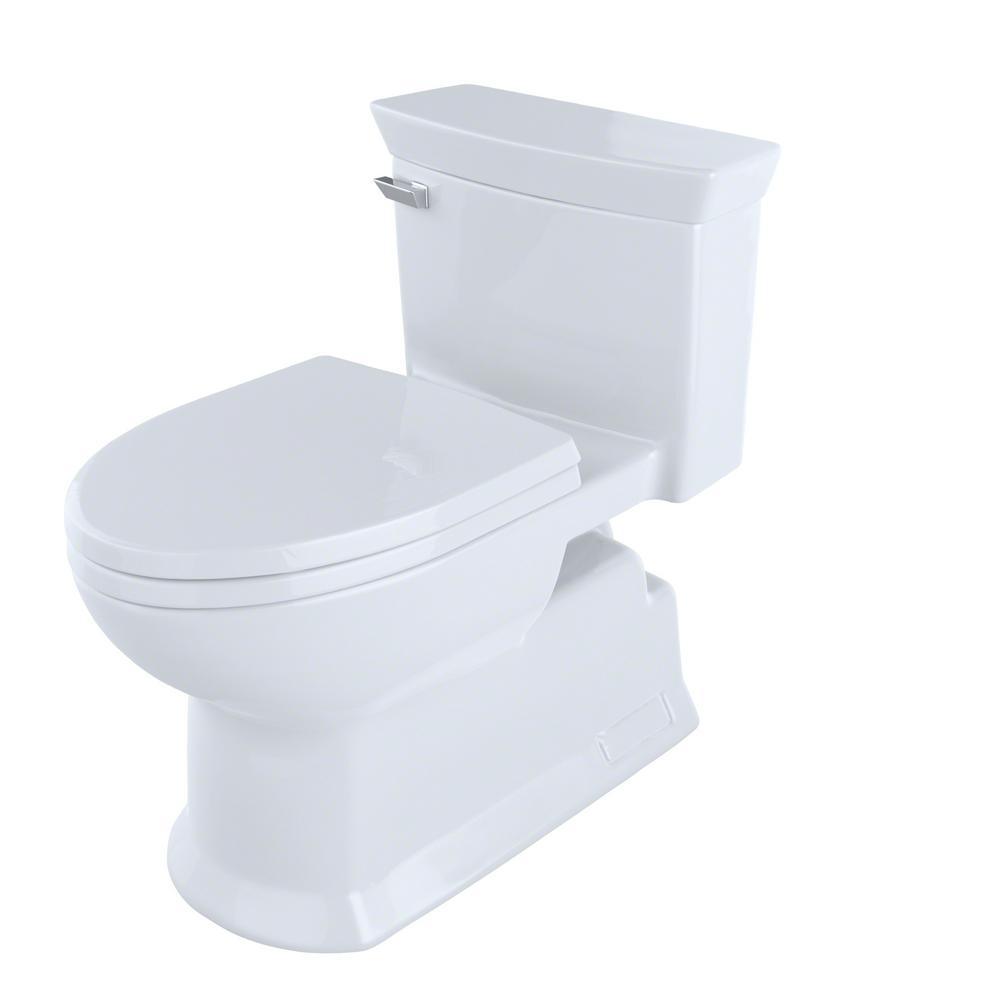 • Elongated one-piece Skirted Design toilet, easier to maintain versus a two-piece toilet