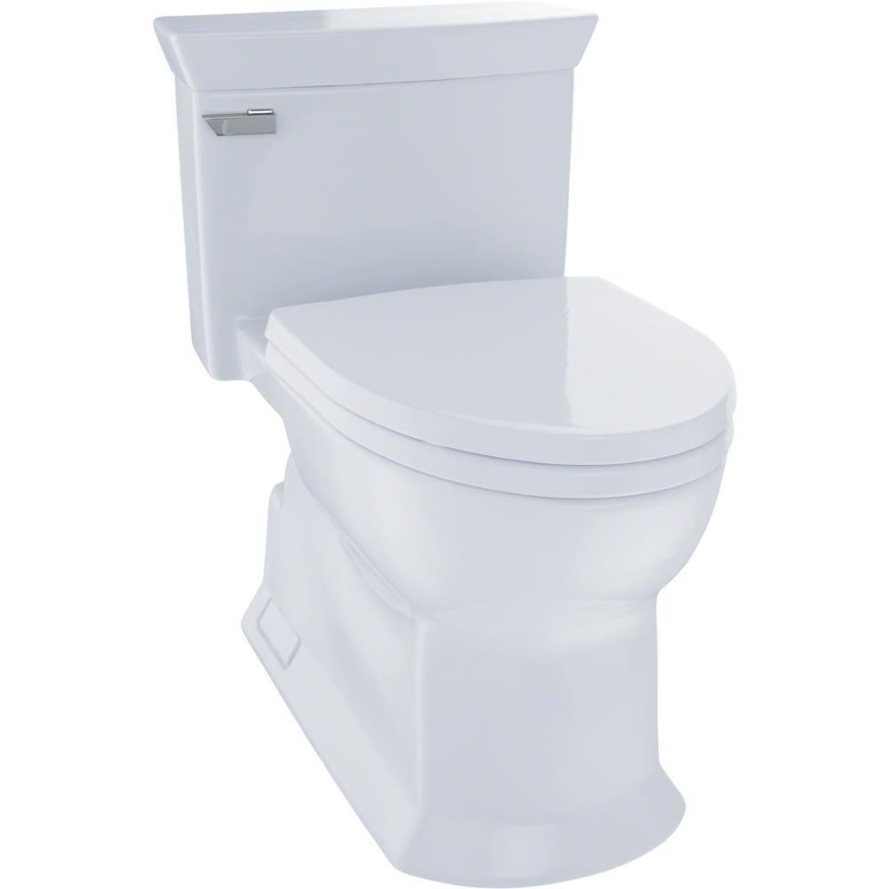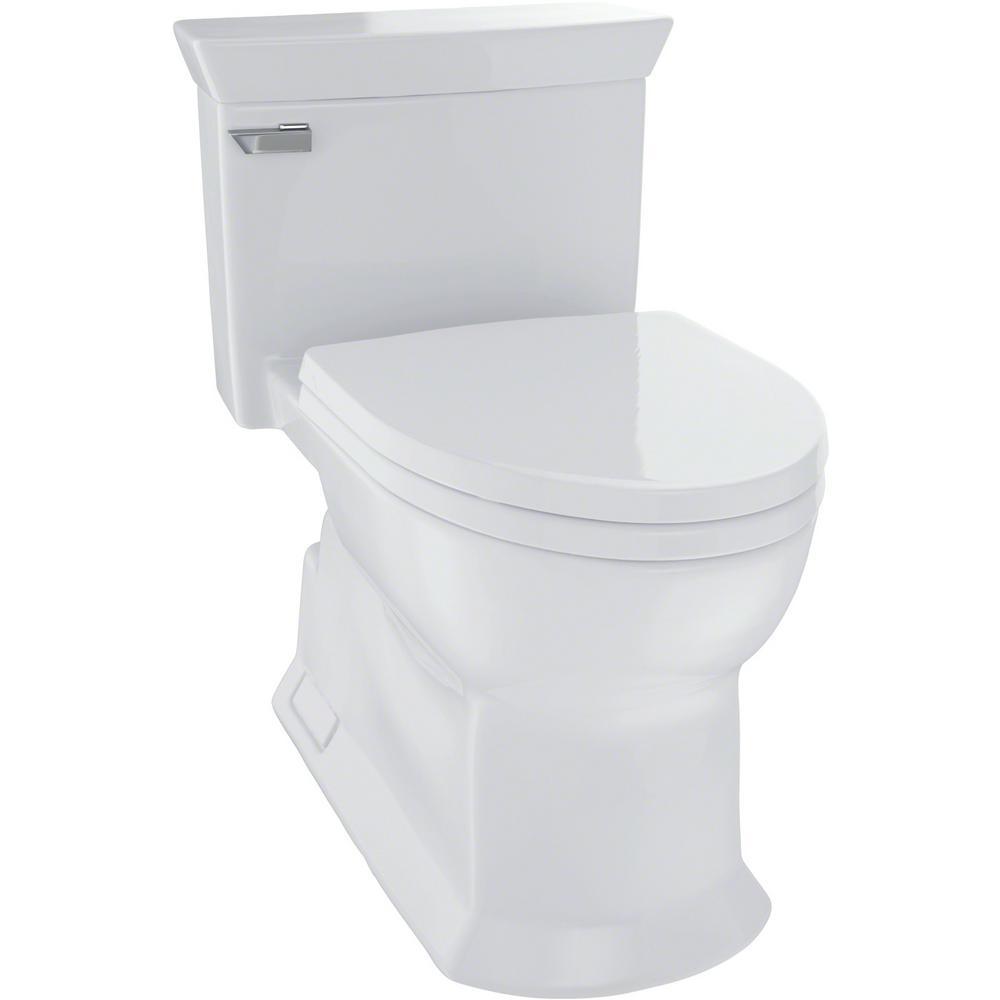 The TOTO Eco Soirée One-Piece Elongated 1.28 GPF Universal Height Skirted Toilet with CeFiONtect has a bold and modern high profile design, projecting TOTO’s mark of excellence: “People Planet Water.” TOTO Eco Soirée features a sleek, one-piece design that will immediately beautify the appearance of your bathroom. The one-piece design is not only aesthetically pleasing, but also offers the benefit of being easier to clean versus a two-piece toilet. By removing the gap between the tank and bowl, we eliminate the hiding place for dirt and debris. An additional benefit of the one-piece toilet is that there is no threat of leaks from bolts or gaskets that can occur in two-piece toilets. The Skirted Design of the TOTO Eco Soirée conceals the trapway, which enhances the elegant look of the toilet and adds an additional level of sophistication. Skirted Design toilets also eliminate the need to reach behind the bowl to clean the nooks and crannies of the exterior trapway. The TOTO Eco Soirée features TOTO’s Tornado Flush, a hole-free rim design with dual-nozzles that creates a centrifugal washing action that assists in rinsing the bowl more efficiently. This version of the TOTO Eco Soirée includes CeFiONtect, a layer of exceptionally smooth glaze that prevents particles from adhering to the ceramic. The Eco Soirée is ADA compliant and meets the standards for EPA WaterSense, and California’s CEC and CALGreen requirements.