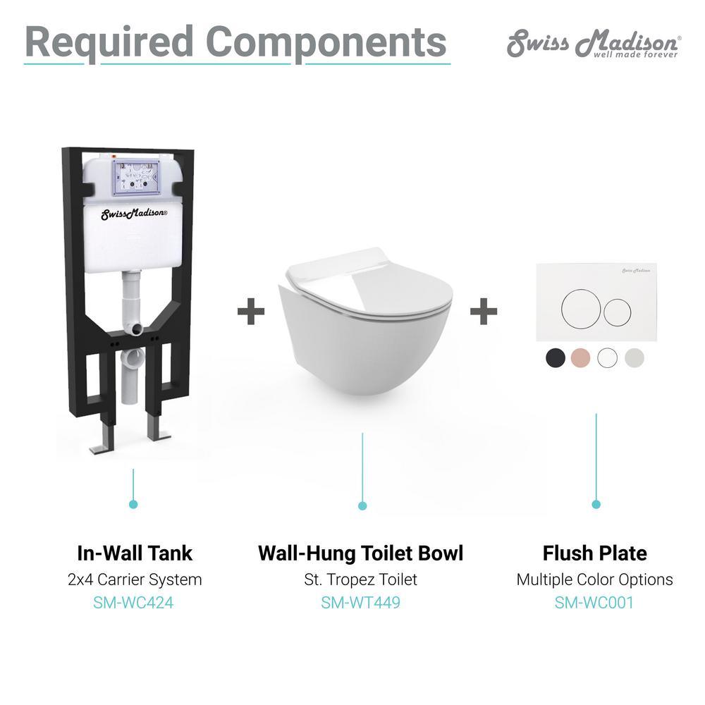 The St. Tropez Wall hung toilet bowl saves precious space for residential and commercial bathrooms. The Carrier Tank is completely concealed, still offering simple access to the plumbing system through the actuator plate. The sleekest and seamless design, that is incredibly easy to clean.