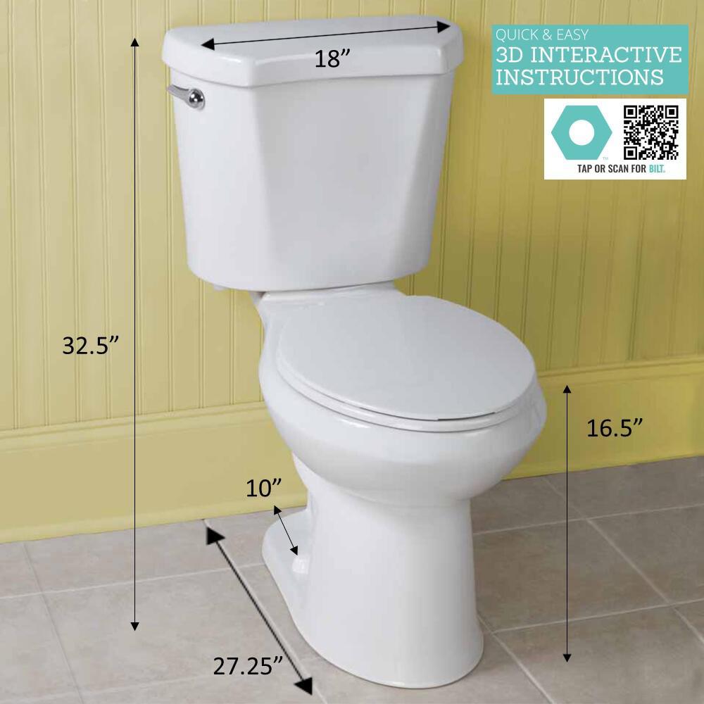 The Glacier Bay 10 in. rough-in 2-piece 1.28 GPF High-Efficiency Round Front Toilet in White is manufactured from durable vitreous china which is resistant to stains, acid and abrasions for long-lasting beauty. This 2-piece toilet comes with a chair-height bowl for maximum comfort and has a white porcelain finish that blends with a wide range of bath or powder room decor styles. High-performance with plenty of flush power, this 2-piece toilet is easy to install and includes a toilet seat, wax ring and floor mounting bolt seat. Limited Lifetime Warranty.