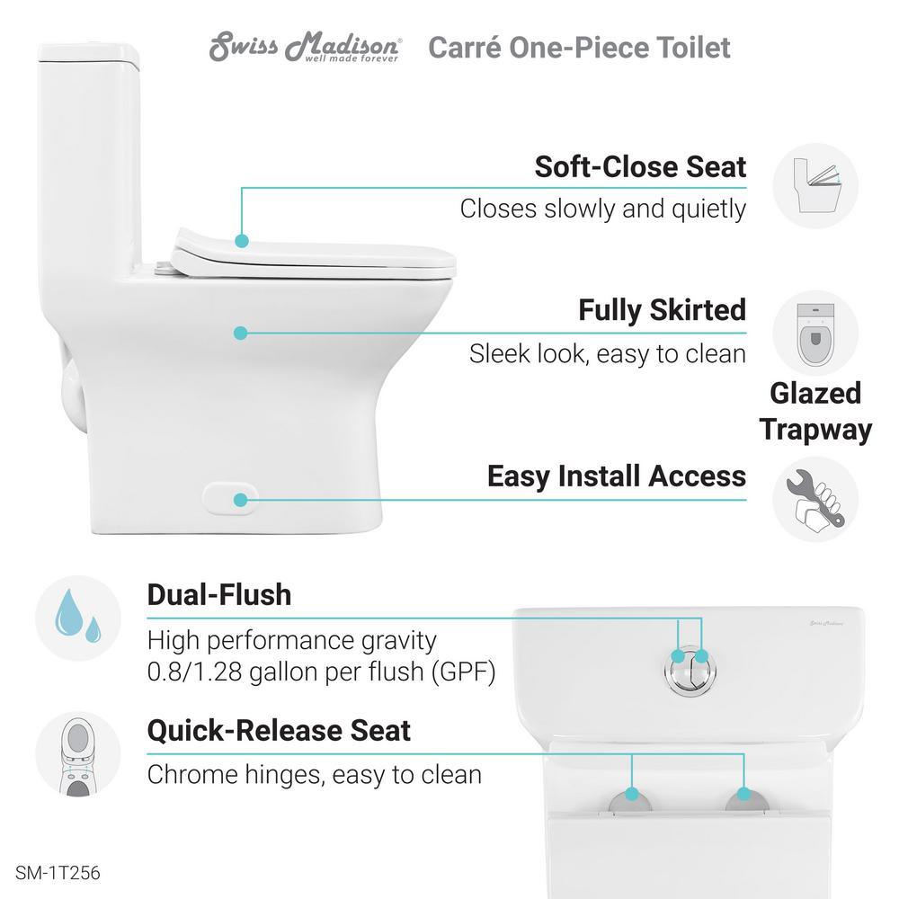 Carre 1-Piece 0.8/1.28 GPF Dual Flush Square Toilet in White, Seat Included
