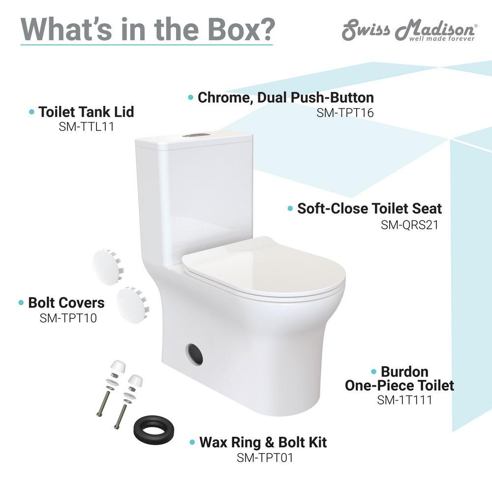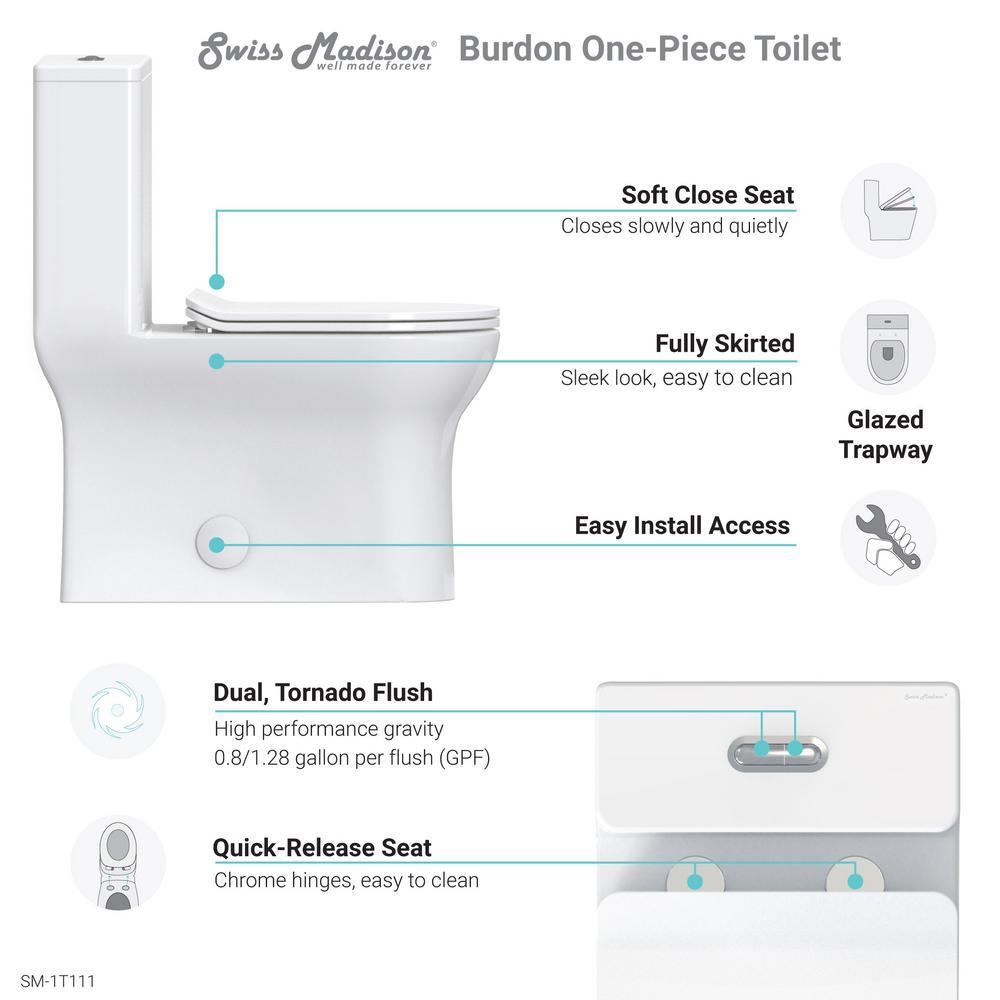 Burdon 1-Piece 0.8/1.28 GPF Dual Flush Square Toilet in White, Seat Included