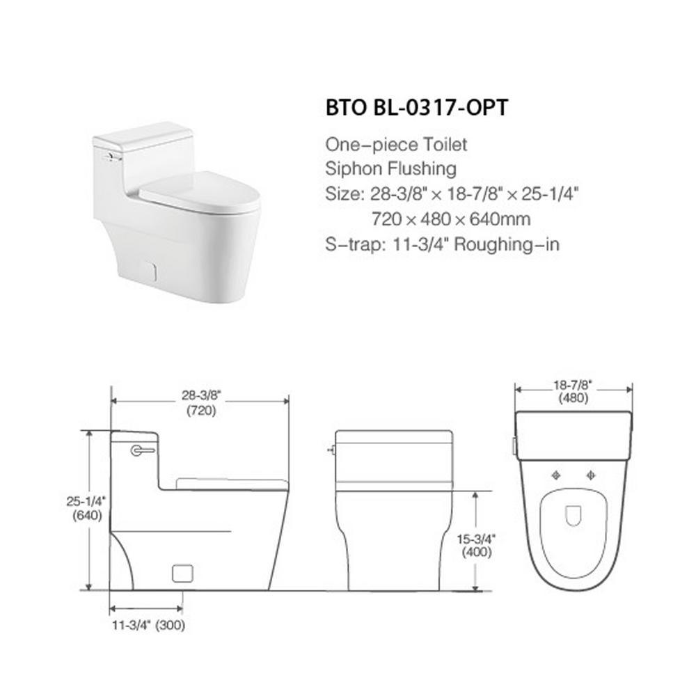 0.8 GPF /1.28 GPF Dual Flush Ceramic Bowl Square Elongated Toilet Bowl Only in White