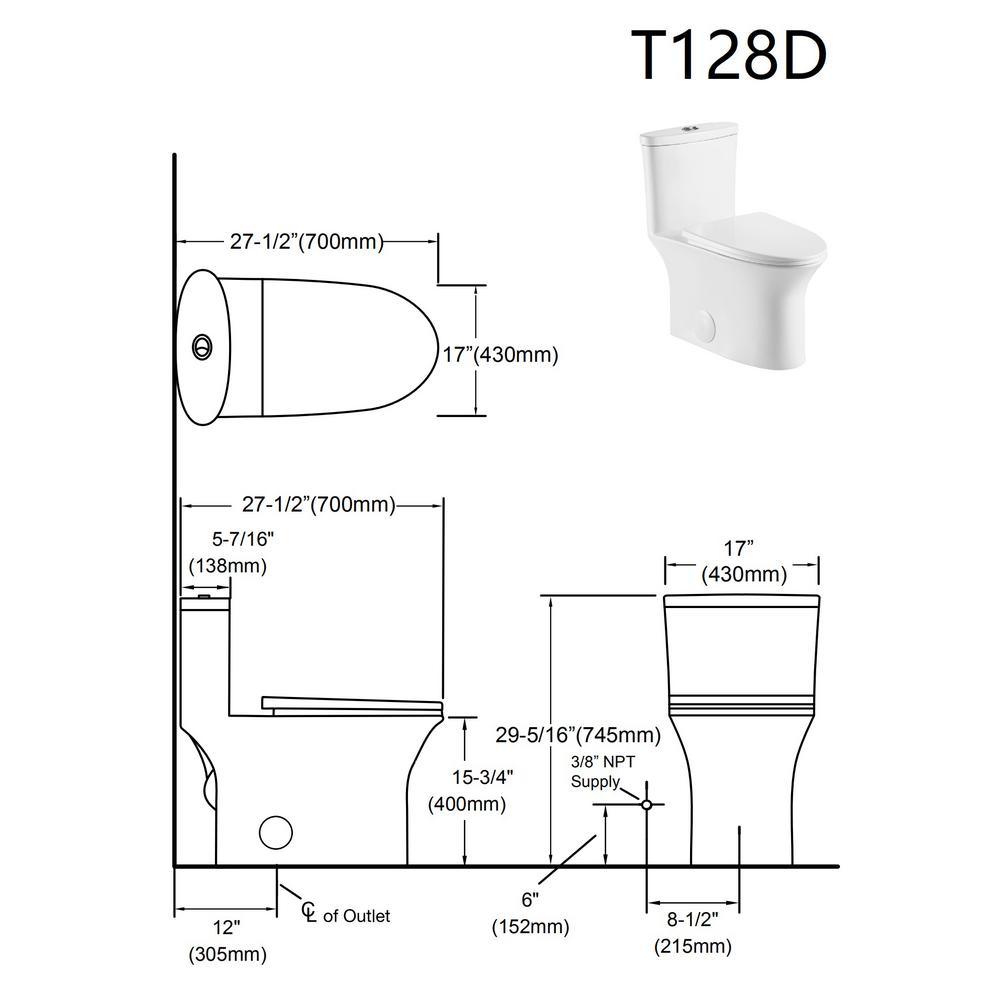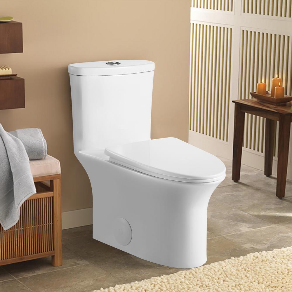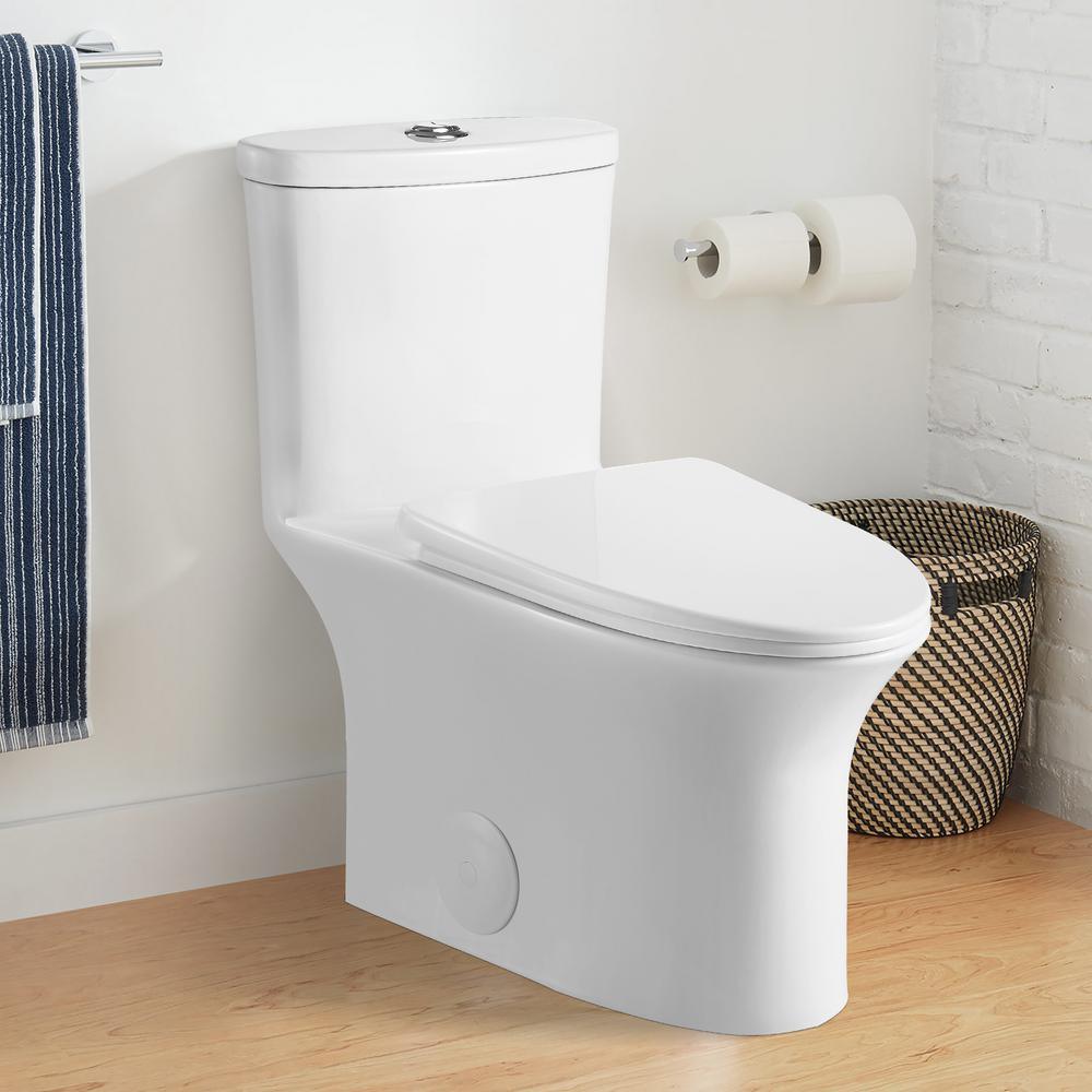 Dual Flush Ceramic 1-Piece 1.28/1.6 GPF Elongated Toilet with Seat and 12-In Rough-In