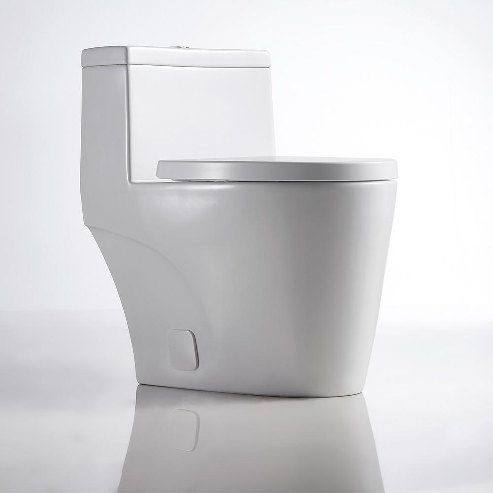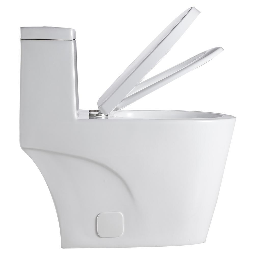 Although designed for small spaces, this toilet looks perfect in every modern bathroom. The seat-lid closes silently. The Dual-Flush feature is ideal for water conservation. Caution: The toilet might seem out of place in a large bathroom. Toilet is easily installed and easy to keep clean.