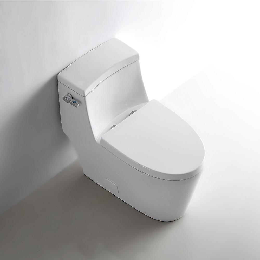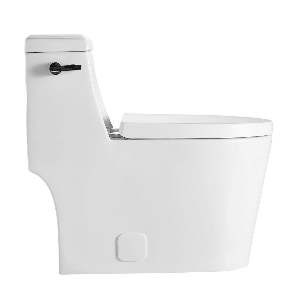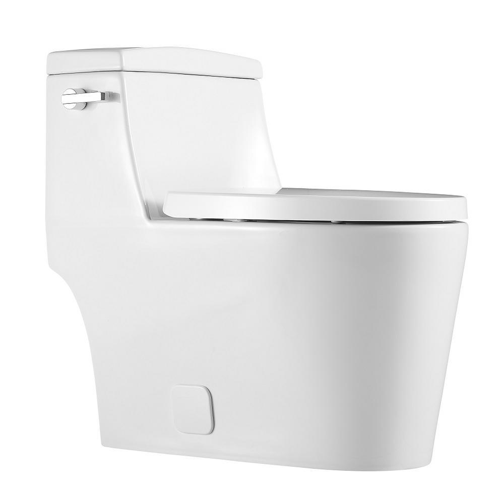 1-Piece 0.8 GPF/1.28 GPF Single Flush High Efficiency Elongated Toilet in White, Seat Included