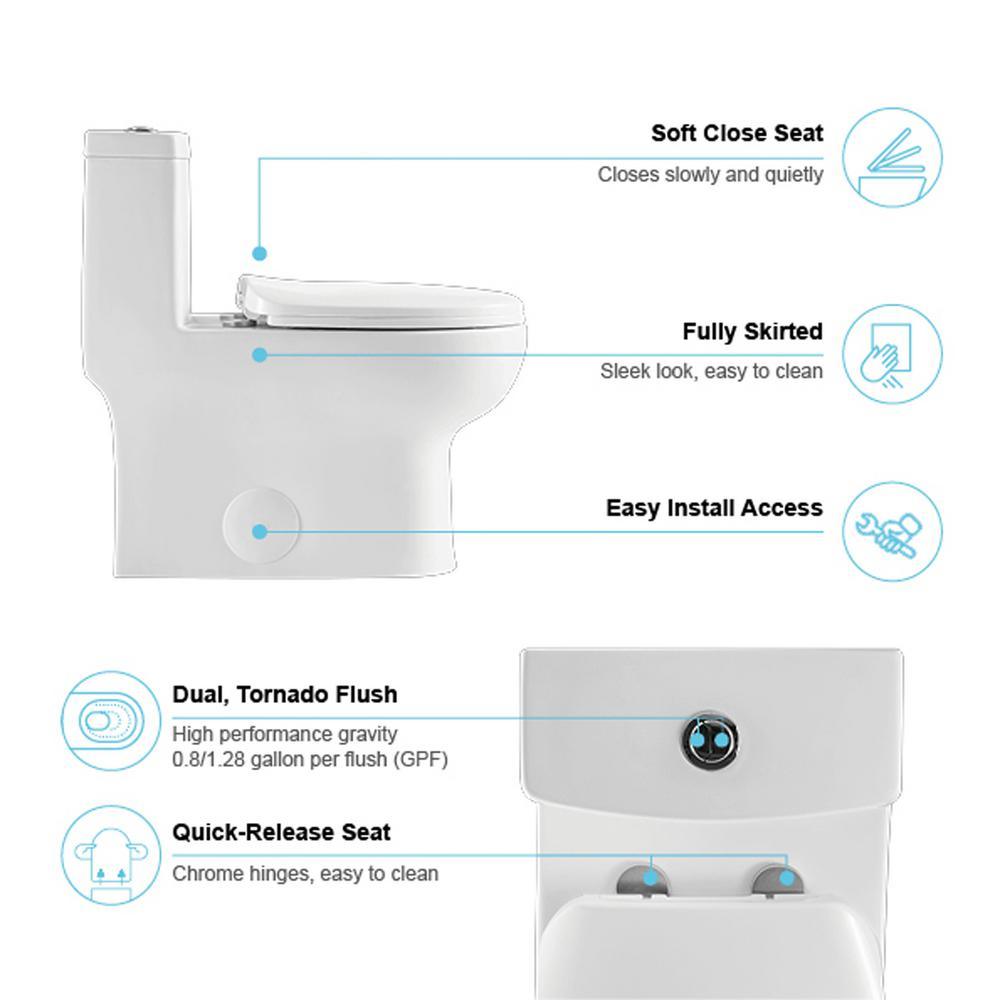 Dual-Flush 1.1 GPF/1.6 GPF One-Piece Toilet in White with Soft Closing Seat Included High-Efficiency Water Sense
