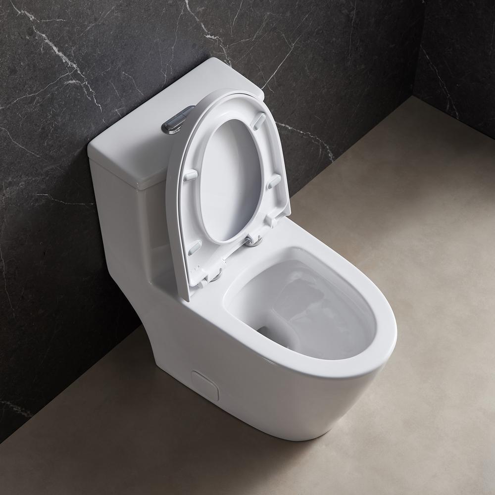 • White one-piece toilet is made of high-end ceramic that resistant to scratches and stains, nice glazed surface inhibits the growth of stain and odor-causing mold, and mildew on the surface, also it will not fade over time, integrate the tank and bowl into a seamless, no corners and grooves, easy-to-clean and avoid water overflow
