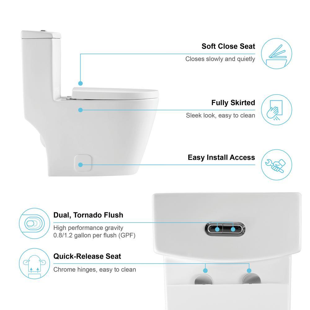 1-Piece Dual Flush 1.2 GPF/0.8 GPF Elongated High Efficiency Skirted Toilet All-in-One Toilet in White Seat Included