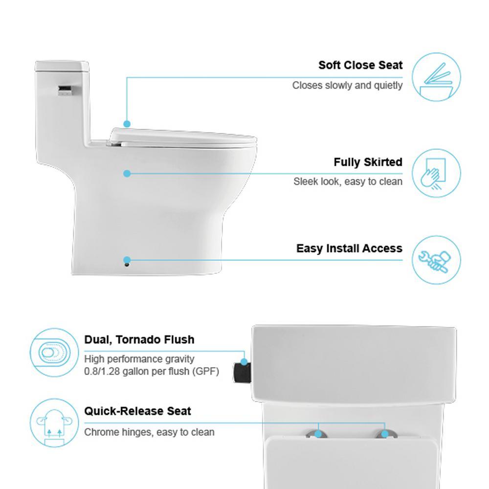 • Dual, tornado flush: high performance gravity, 0.8/1.28 (GPF)