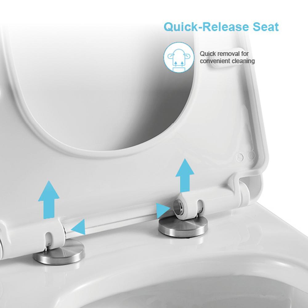 Tensioned hinges ensure a soft close. Quick removal for convenient cleaning. Scrubs the bowl clean with every flush.