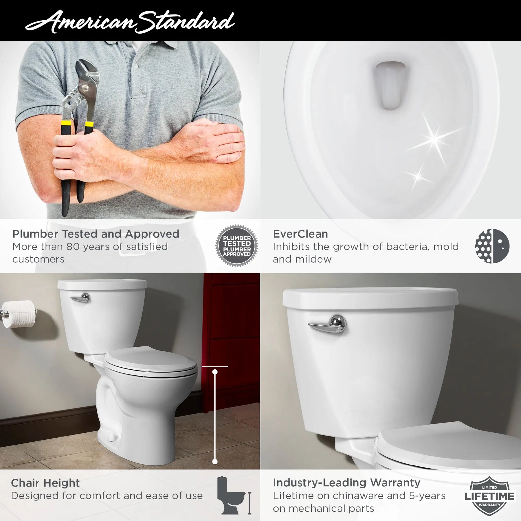 • Cleaner With EverClean: Antimicrobial vitreous china surface helps resist mold, mildew, and bacteria.