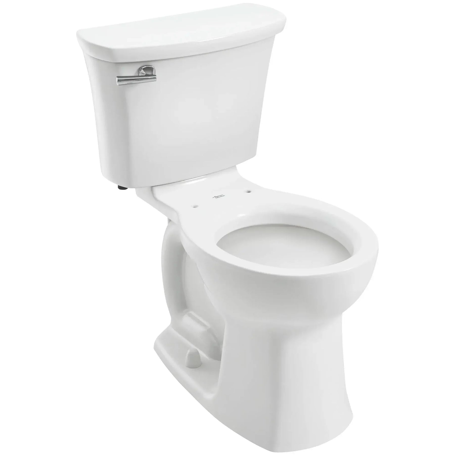 The American Standard Edgemere two-piece toilet delivers efficient 1.28 GPF performance in a compact round-front design ideal for smaller baths. Chair-height seating (approx. 17 in. with seat) and a fully glazed trapway support reliable, comfortable flushing, while the EverClean surface helps inhibit mold and mildew for easier maintenance.
