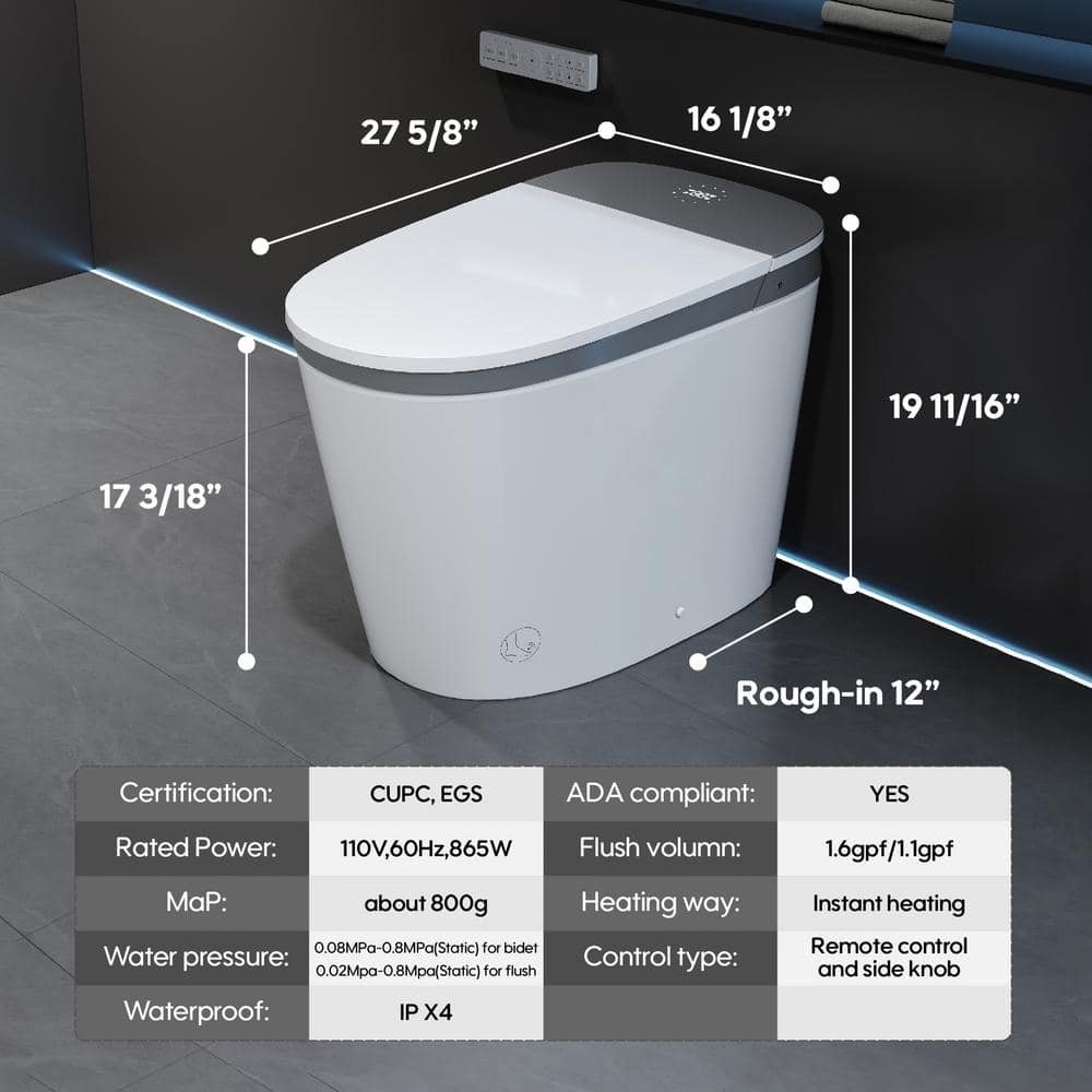 ANGELES HOME Elongated Smart Toilet Bidet with Automatic Features & Night Light