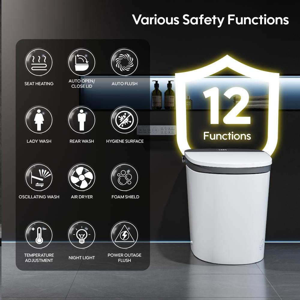 Imagine stepping into a bathroom experience redefined by the ANGELES HOME Smart Toilet Bidet. Its sleek and elongated design is complemented by a radiant white finish that seamlessly integrates into any modern bathroom decor. The standout automatic lid open feature invites you in with a sense of luxury, offering a warm seat and a dazzling night light that transforms your routine. This toilet is not just a fixture; it's a statement of refined elegance and intelligent living.