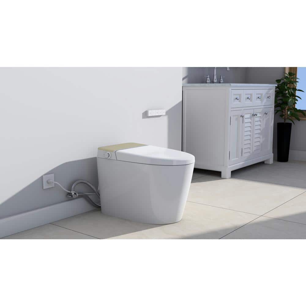 The ANGELES HOME Elongated Smart Toilet elevates bathroom experiences with its futuristic features. Enjoy the convenience of auto open/close lids, soothing heated seats, and an innovative foot sensor. This high-tech toilet combines luxury and hygiene, offering customizable bidet functions and water-saving technology.