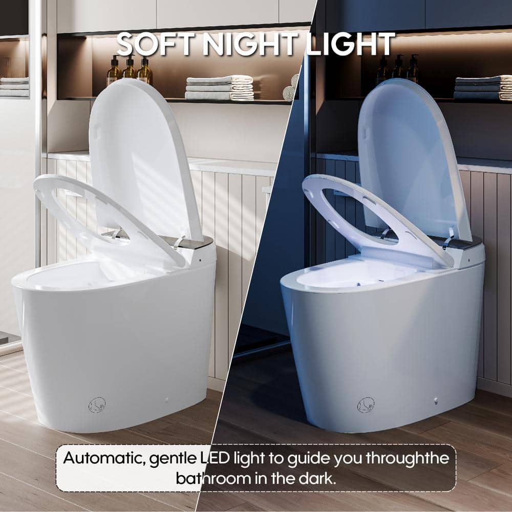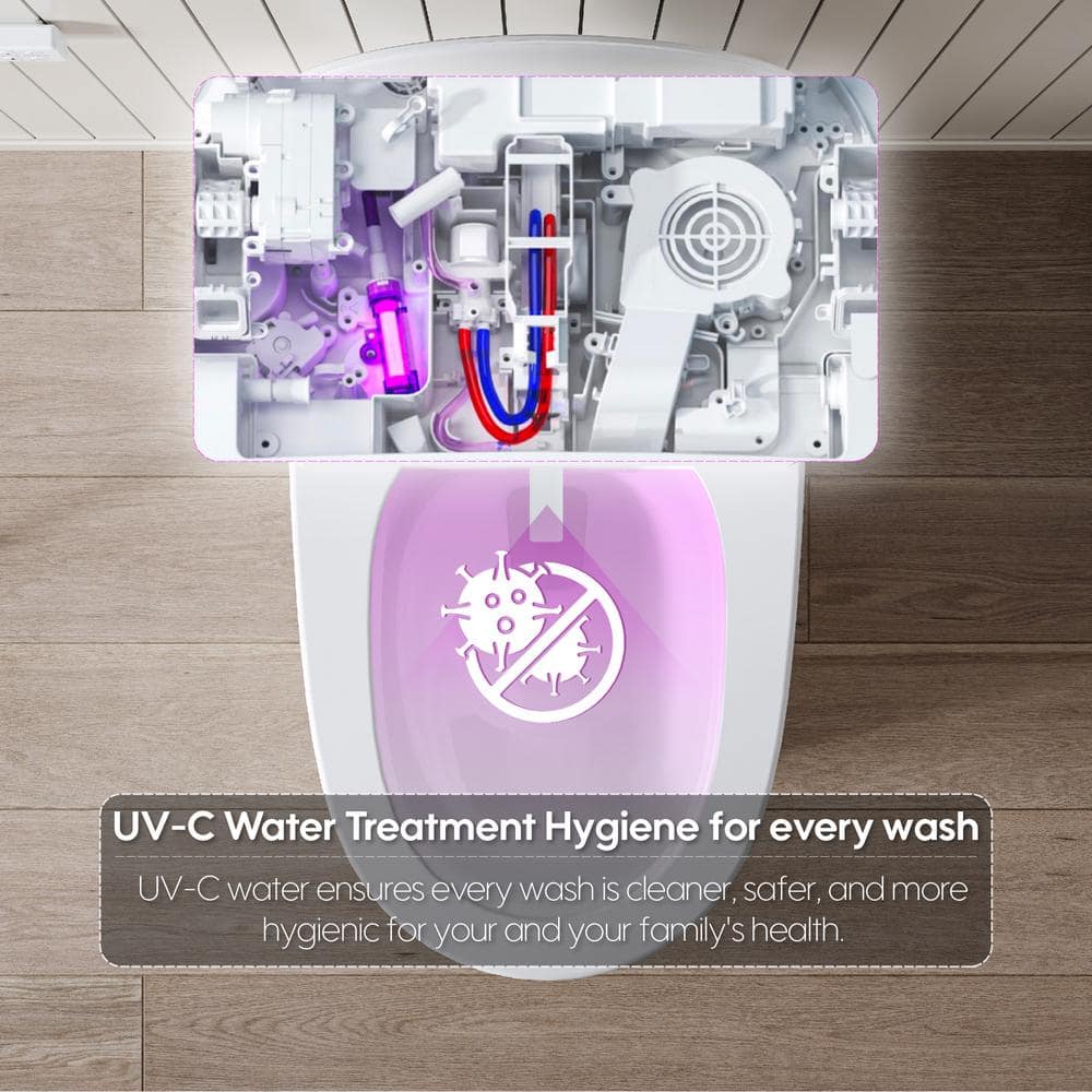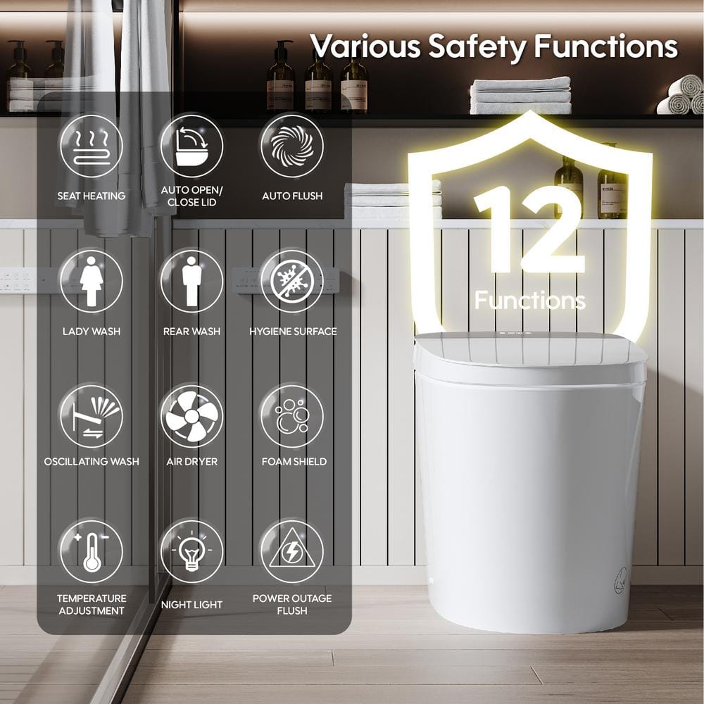 Elevate your bathroom experience with the ANGELES HOME Smart Bidet Toilet, featuring a built-in tank and advanced technology for unparalleled comfort. Enjoy the convenience of automatic flush, lid operation, heated seat, and UV sterilization, all designed to make your daily routine more luxurious and efficient.