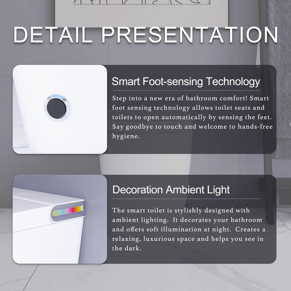 • Foot-Sensing Automation: Automatic open/close seat and lid with simple foot movement for a hygienic, touch-free experience.