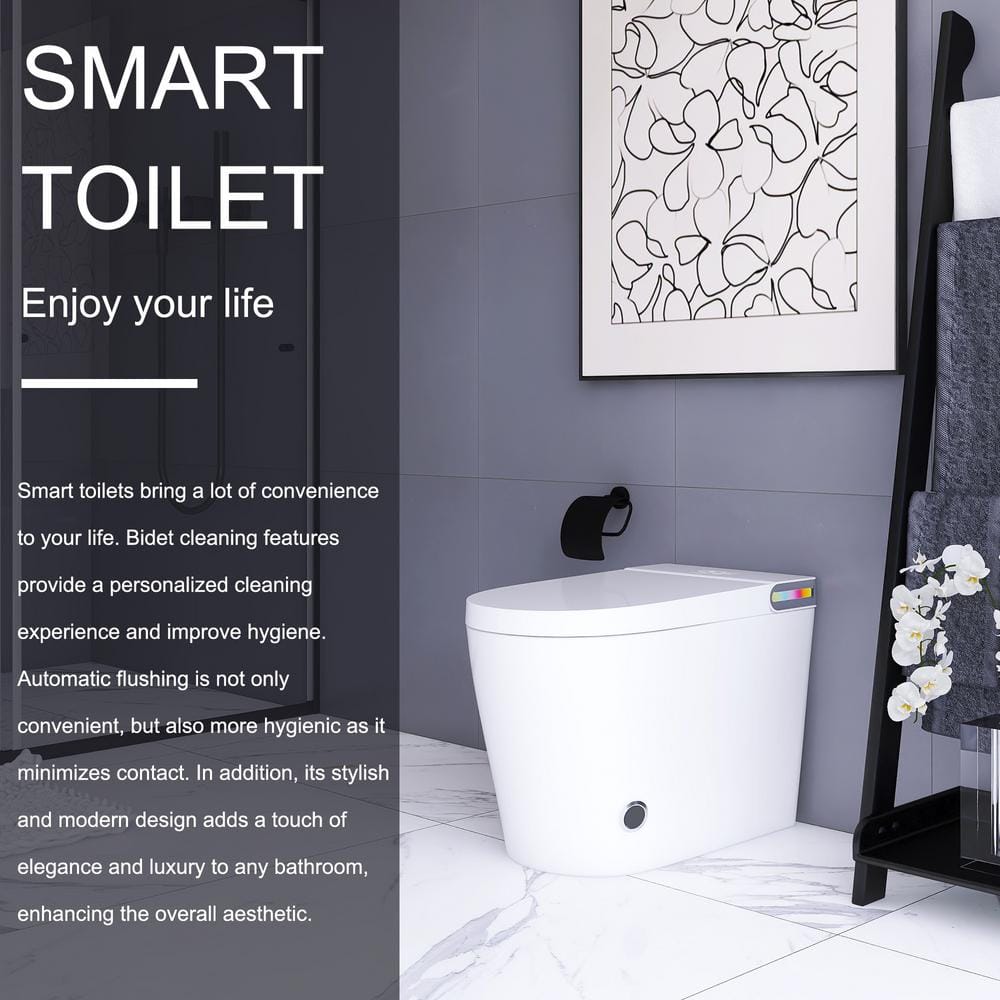Boosicavelly Smart Bidet Toilet 1.19 GPF in White with Night Light and Remote Control