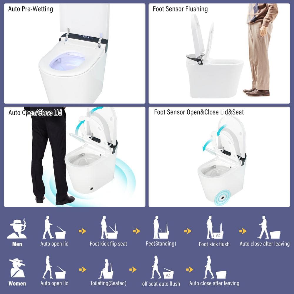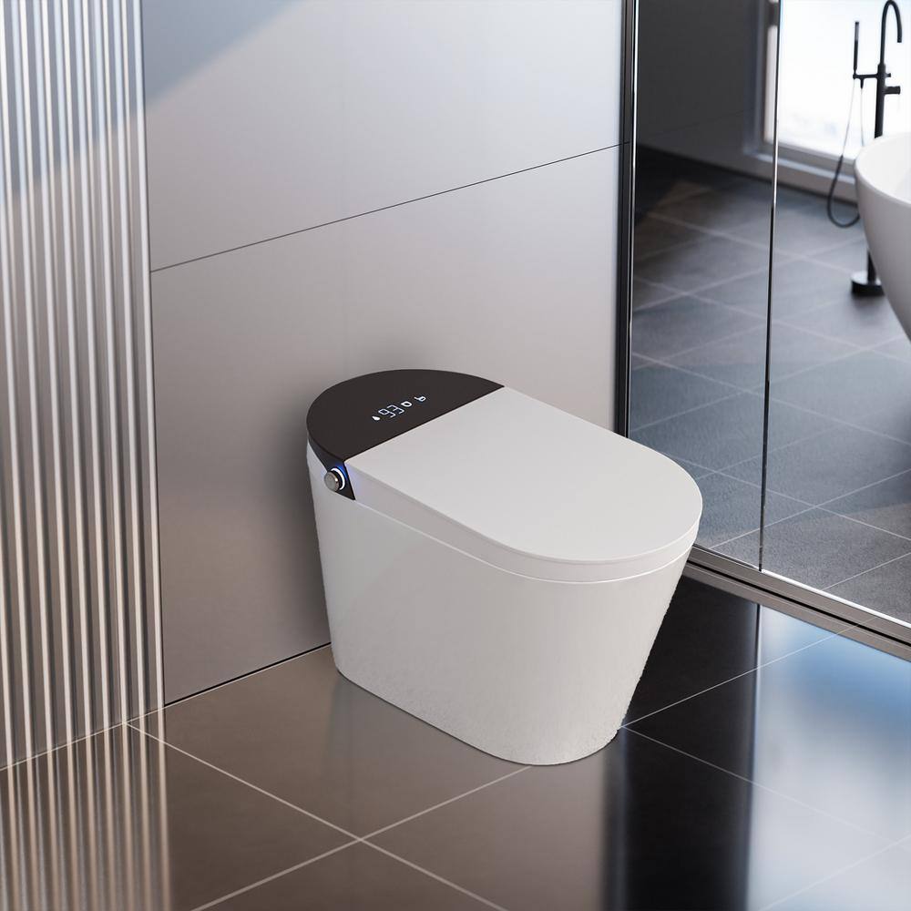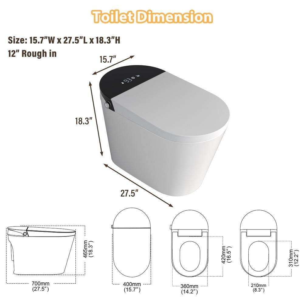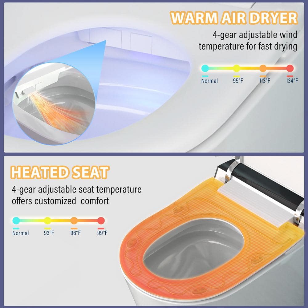 Redefine your bathroom experience with the CASAINC Elongated Electric Smart Bidet Toilet, featuring powerful flush technology and a soothing warm water wash. Its tankless design and auto open/close functions create a sleek, modern aesthetic while ensuring convenience and hygiene in every use. With customizable settings and a user-friendly LED display, this smart toilet provides an advanced, hands-free experience for every family member.