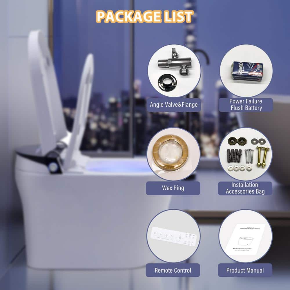 A: The toilet includes a self-cleaning nozzle, warm air dryer, and automatic flush options to maintain hygiene effortlessly.