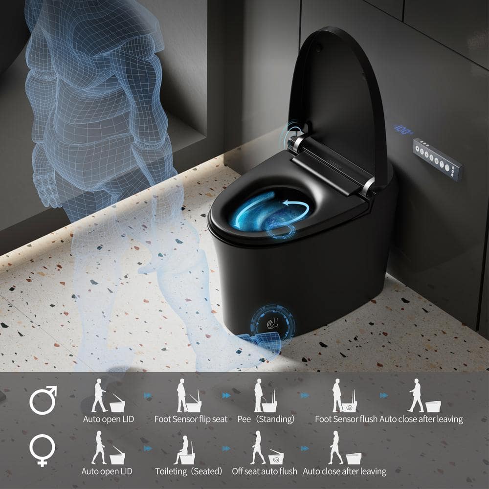 Transform your bathroom into a sleek, modern sanctuary with the Casta Diva Elongated Bidet Toilet. Its stunning black finish, combined with sophisticated technology like auto-open lid and hands-free flushing, not only serves functionality but adds a luxurious allure to your space. Pair it with contemporary fixtures to amplify its bold design statement. Truly, this bidet toilet is more than just a bathroom necessity—it's a piece of art that enhances opulent living.