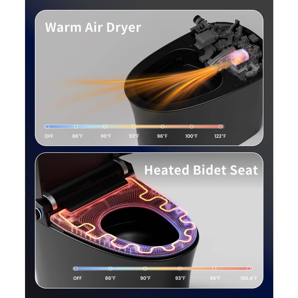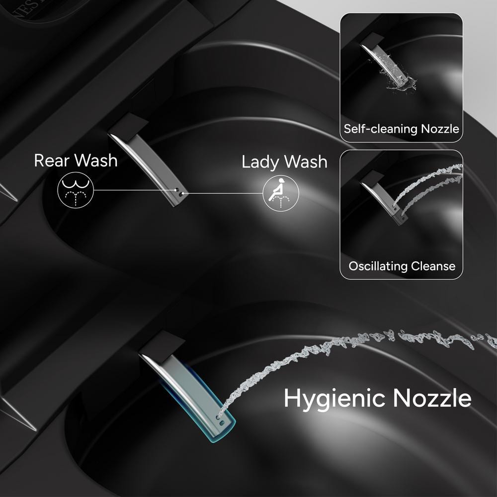 • Comfort & Hygiene: Enjoy the heated seat, warm water bidet, and air dryer for maximum comfort and cleanliness.
