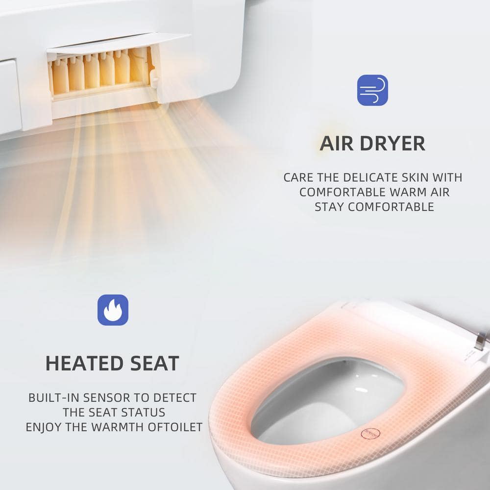 • Comfort and Hygiene: Heated seat, warm air dryer, and warm water dual-action spray with oscillating features.