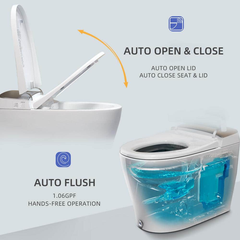 • Smart Convenience: Auto lid open/close, auto flush, and foot kick operation for hands-free use.
