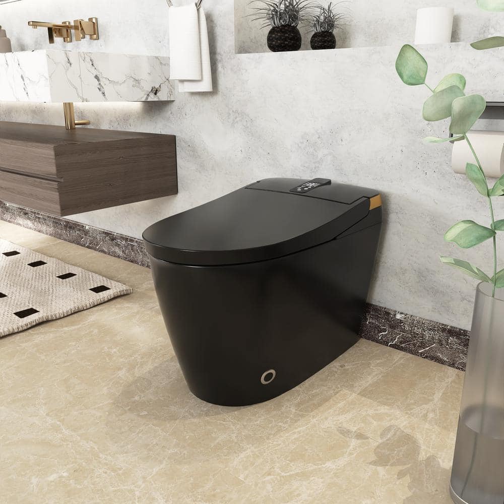Smart Elongated Bidet Toilet 1.28 GPF Black with Deodorizing, Soft Close