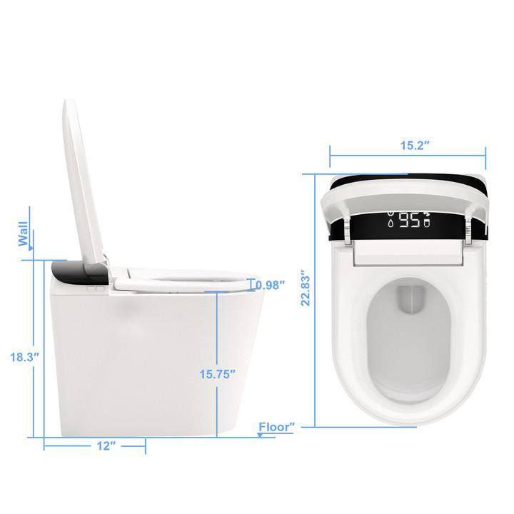 Elevate your bathroom experience with the FORCLOVER Elongated Bidet Toilet, expertly engineered to offer the utmost in personal hygiene and comfort. Combining state-of-the-art technology with luxurious features like a heated seat and warm air dryer, this smart toilet provides an oasis of cleanliness and convenience. Automated functionalities such as auto flush and lid flip ensure a seamless, hands-free experience.