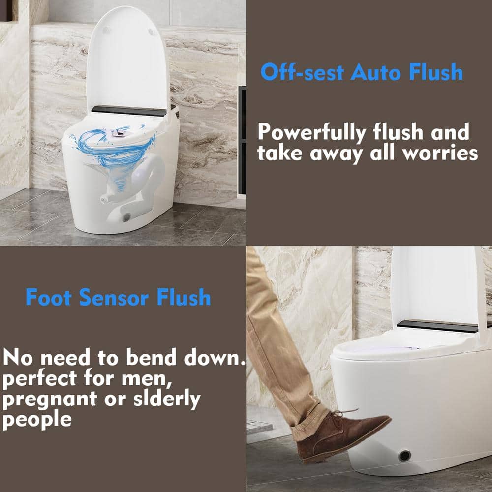 • Foot-Sensing Auto Open & Flush: Experience hands-free convenience with technology that responds to your proximity, opening and flushing automatically.