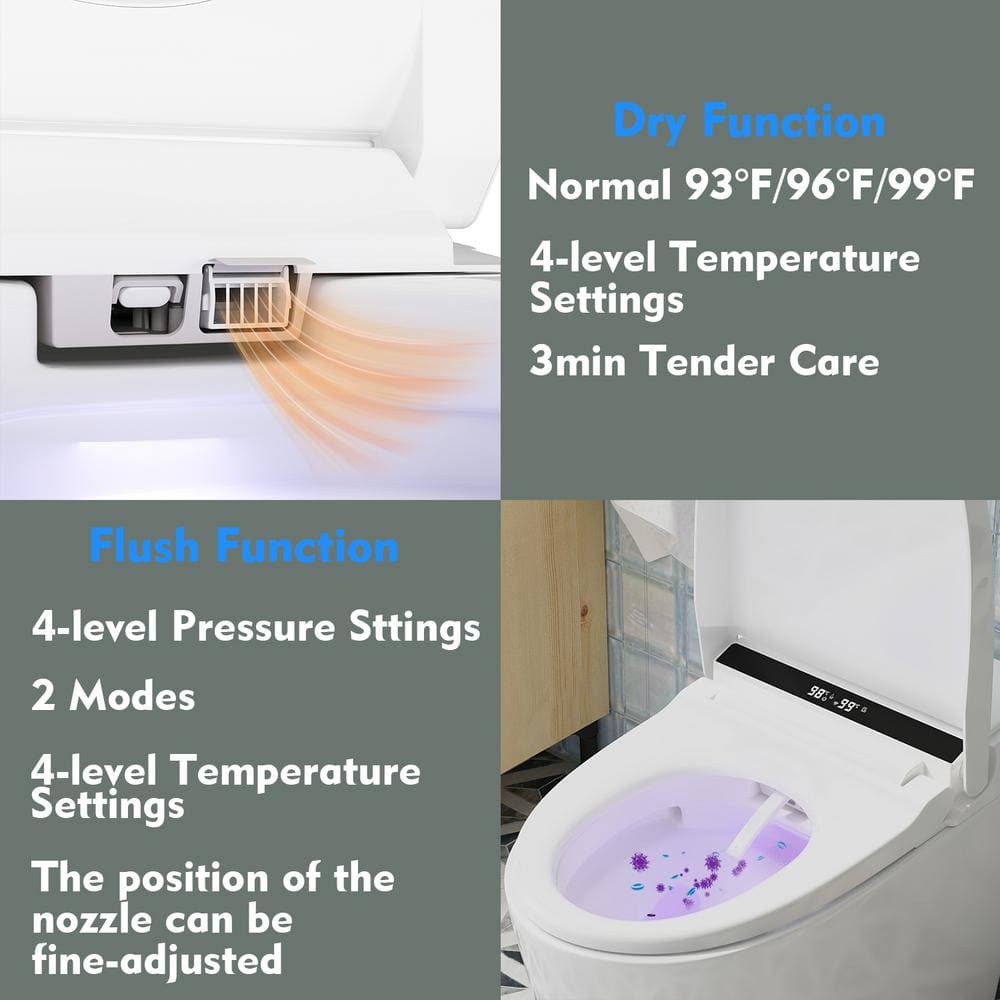 - Advanced Bidet Features: Includes adjustable water temperature, pressure settings, and a digital display for personalized cleaning.