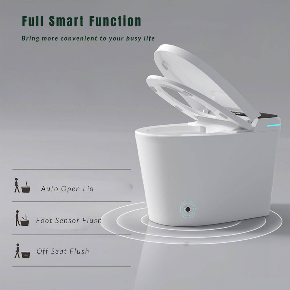The FUNKOL Elongated Smart Bidet Toilet is a state-of-the-art bathroom upgrade featuring automatic lid, foot sensor activation, and powerful siphon jet flushing. This luxurious unit offers adjustable warm air drying, a heated seat, and multiple wash modes to elevate comfort and hygiene. With an LED display and remote control, you can easily personalize your bathroom experience.