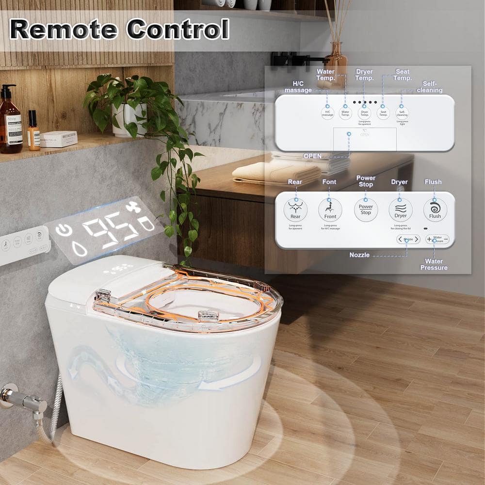 GIVING TREE Smart Toilet Bidet with 1.32 GPF Built-In Water Tank and Warm Air Dryer