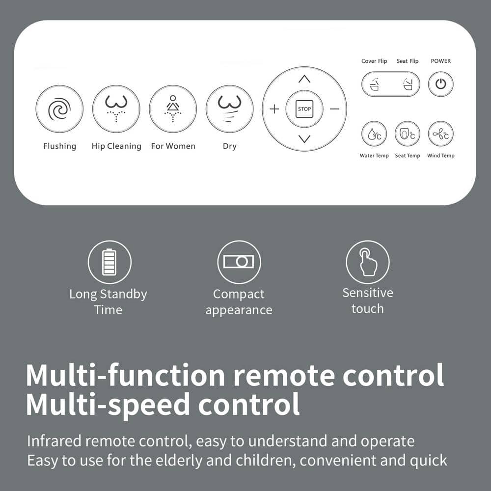 • Remote Control: Easily manage temperature, spray strength, and flushing with a handy remote.