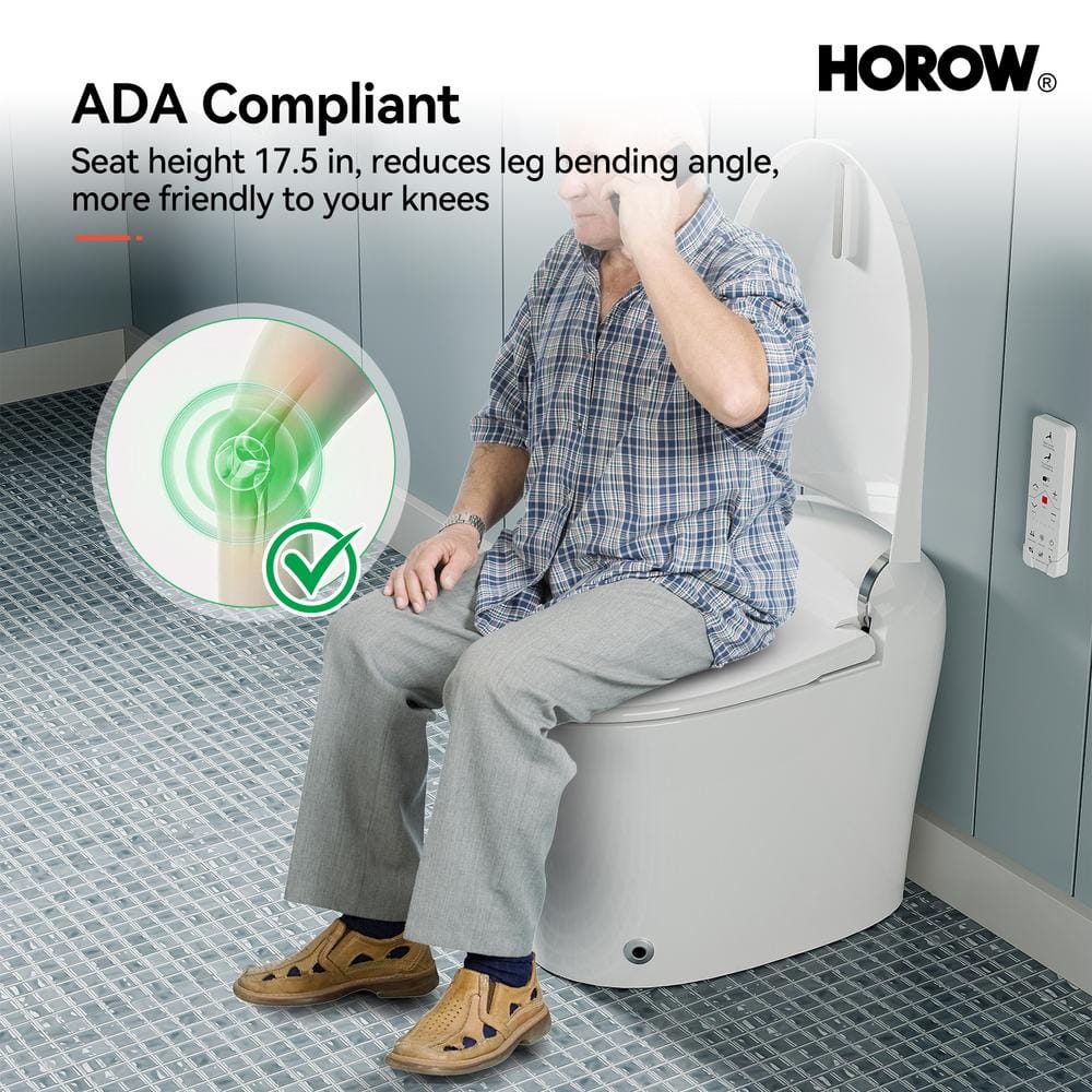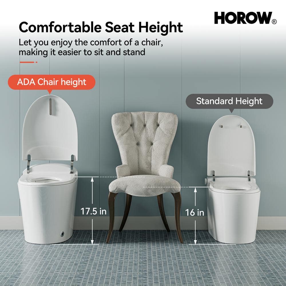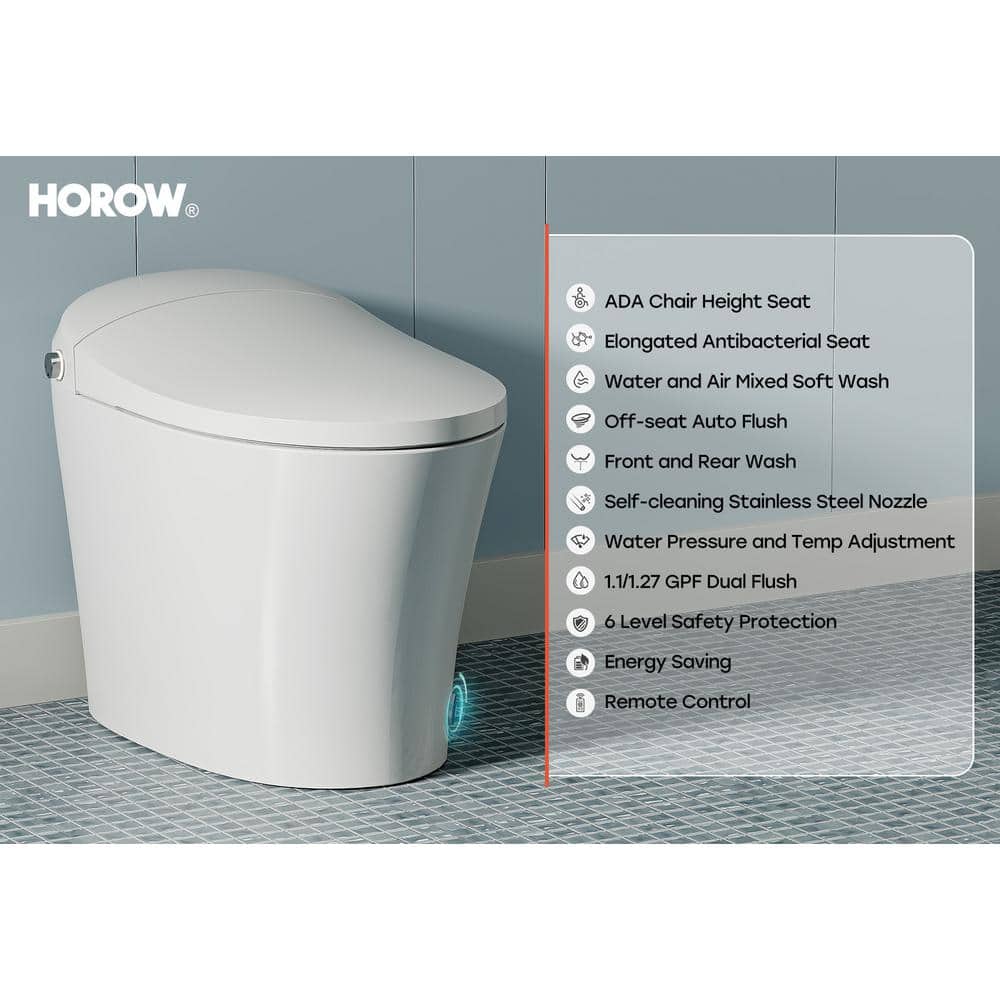 HOROW 1/1.27 GPF Tankless Smart Toilet Bidet with Dual Flush System, White